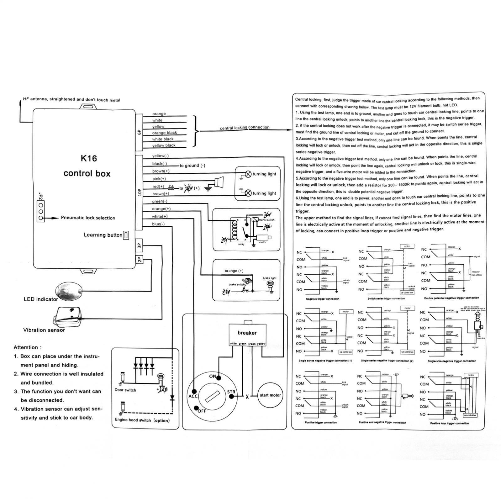 Keyless Entry Car Alarm Security System, 2 Key Fob Remote Controls and Siren 24V