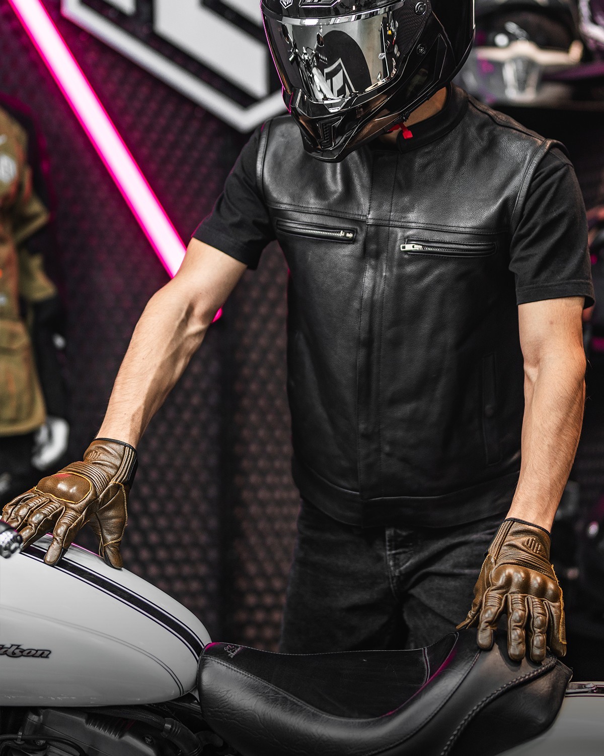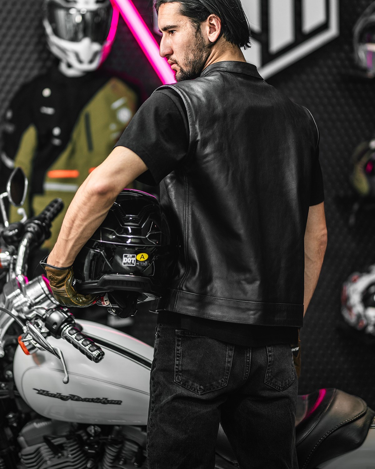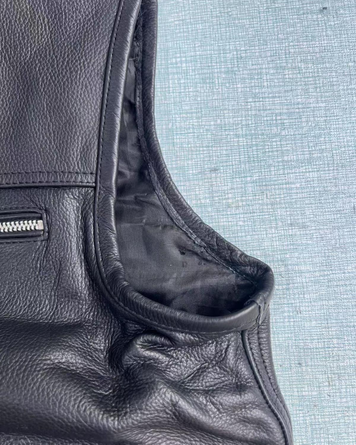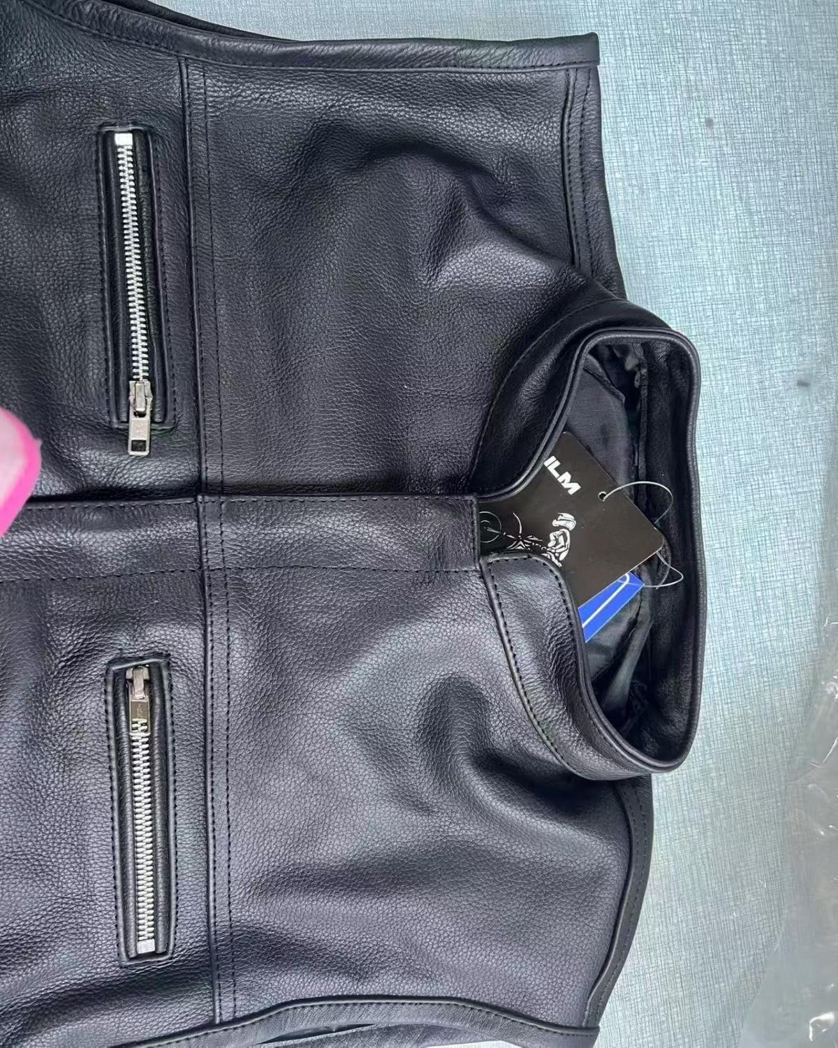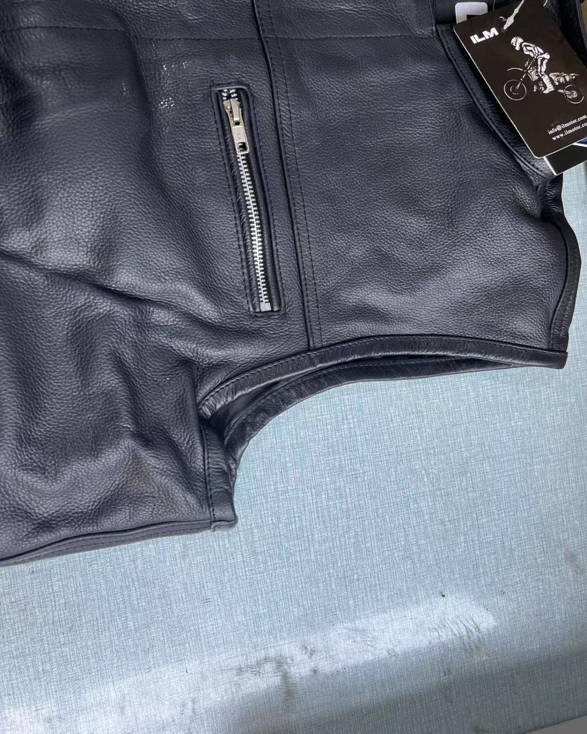 ILM Men Cowhide Leather Motorcycle Vest CE Armor Concealed Carry Pockets VL1