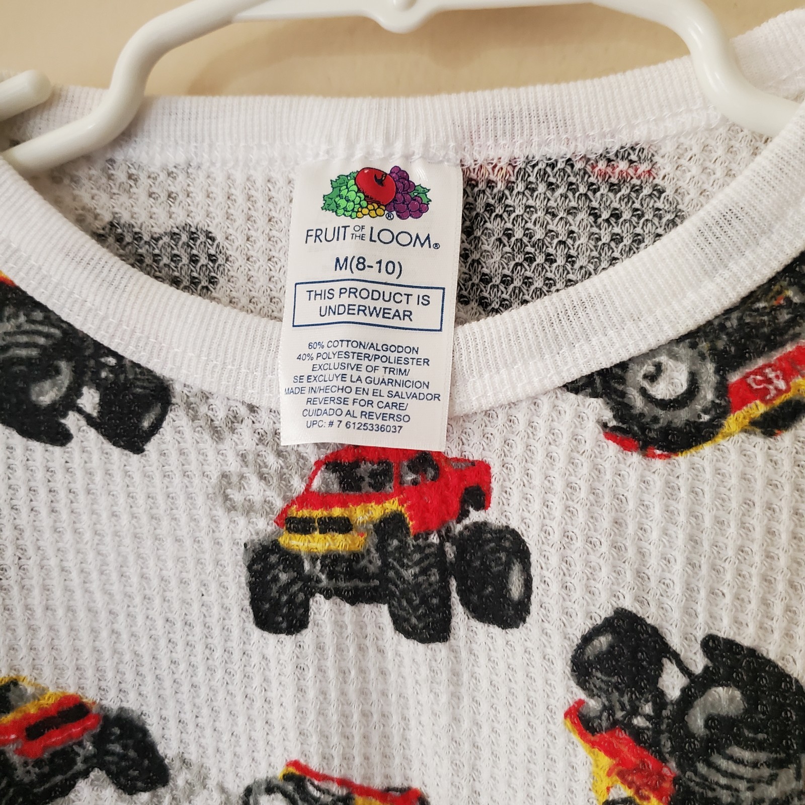 как выглядит Vintage Hanes Earth Shaker Monster Truck Thermal Waffle Kids Pajama Shirt EUC фото