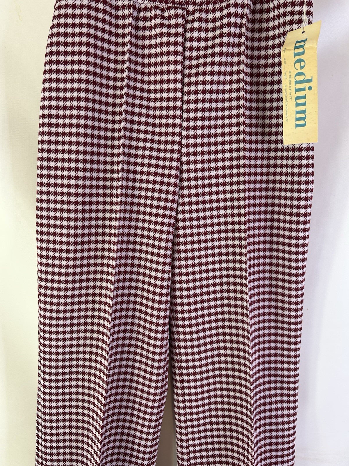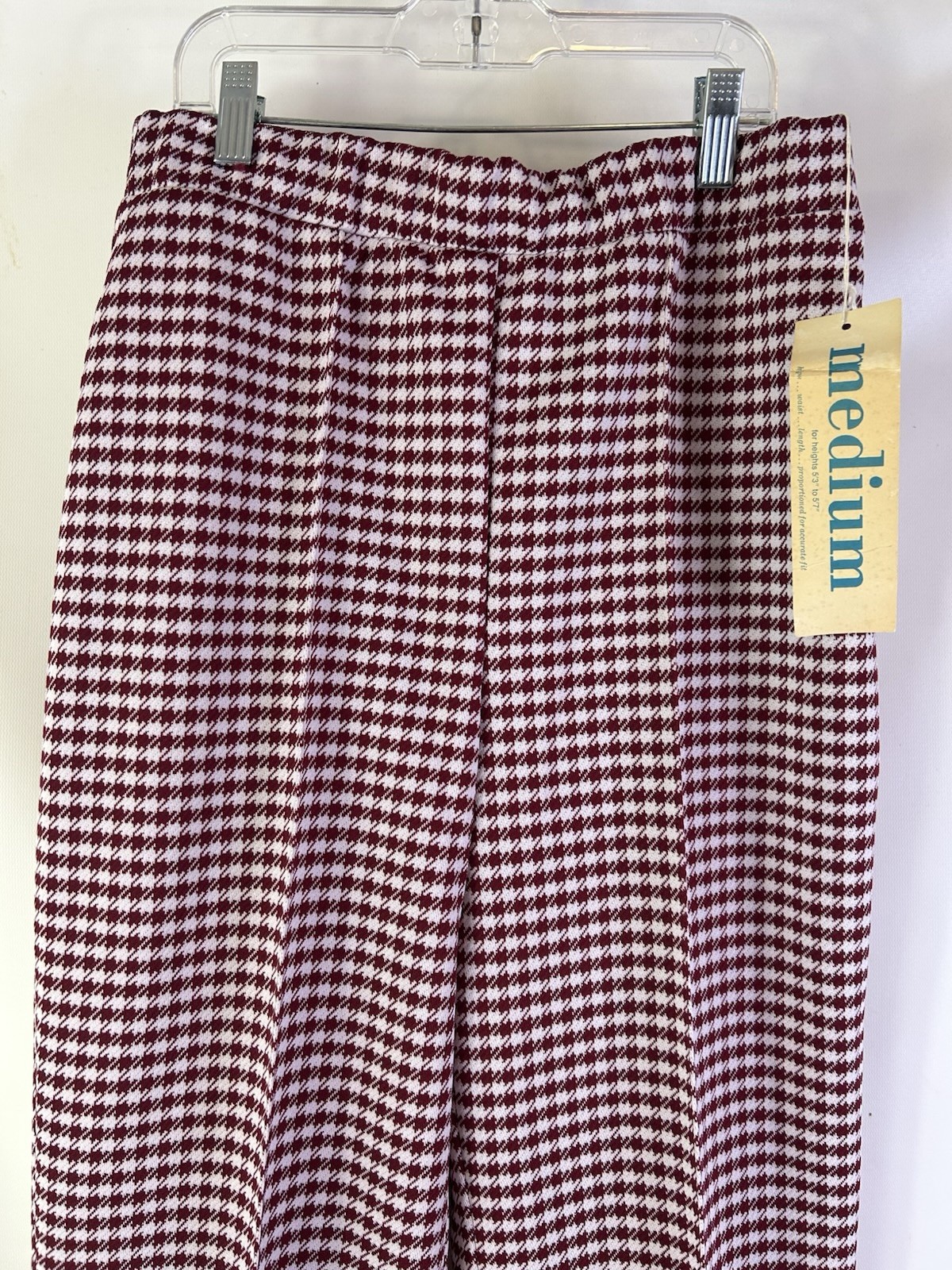 Deadstock Vintage 70s Womens 16 Houndstooth Plaid Knit High Rise Wide Leg Pants