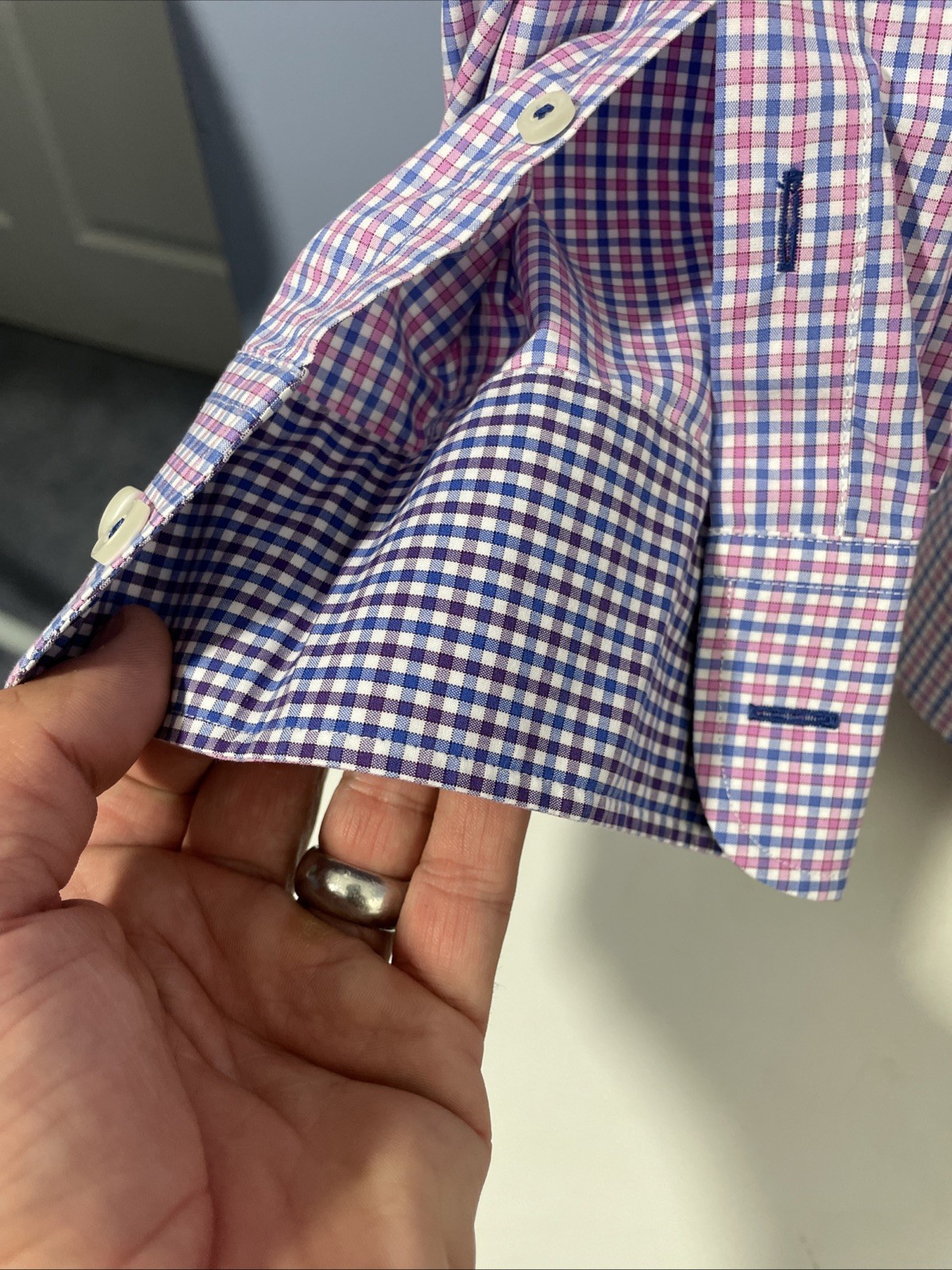 как выглядит UNTUCKit LONG SLEEVE Button Shirt Wrinkle Free Cotton Slim Check 2 Ply Sz L фото