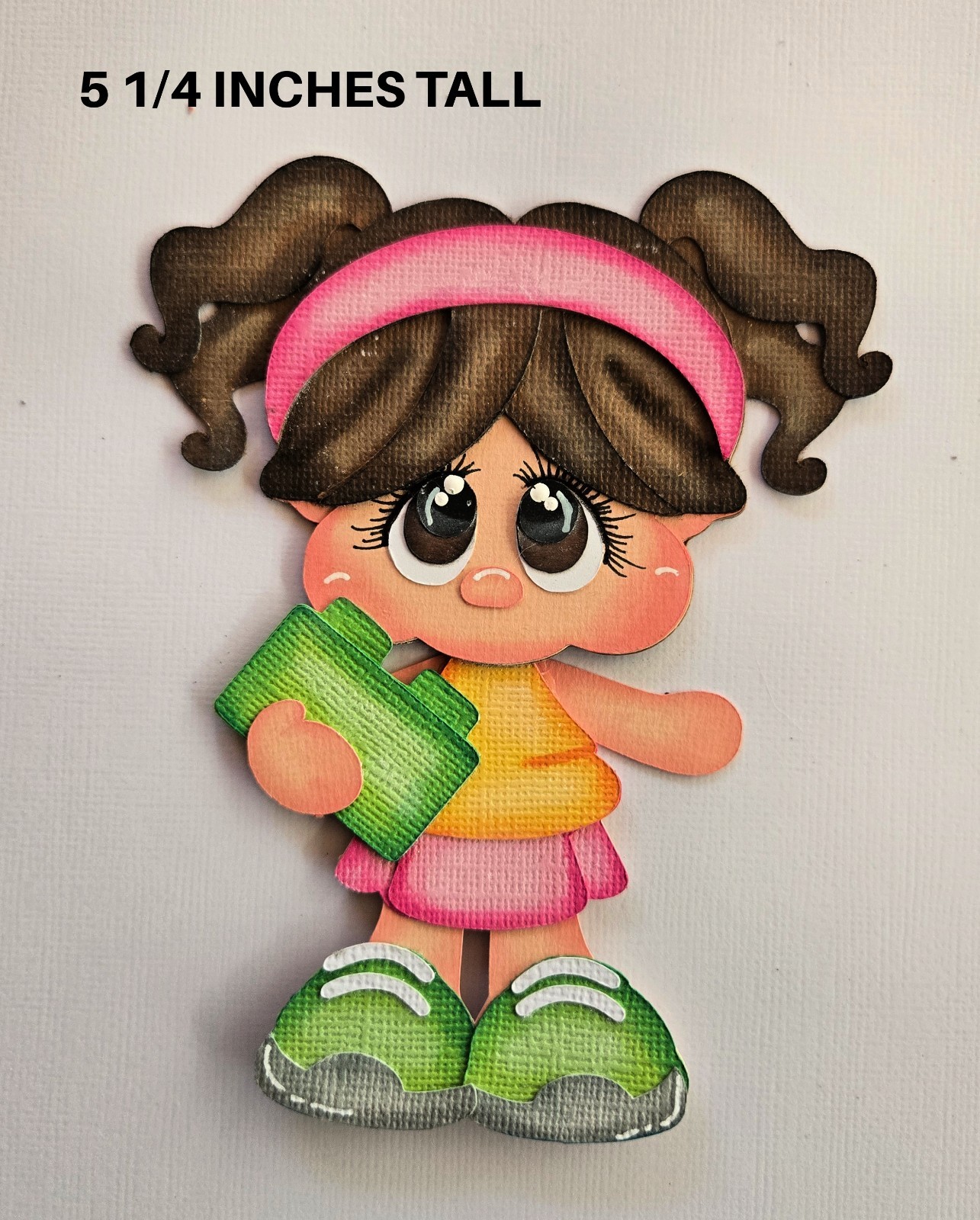 BUILDING FUN DK BROWN HAIR GIRL PLAY scrapbook premade paper piecing 3D die cut