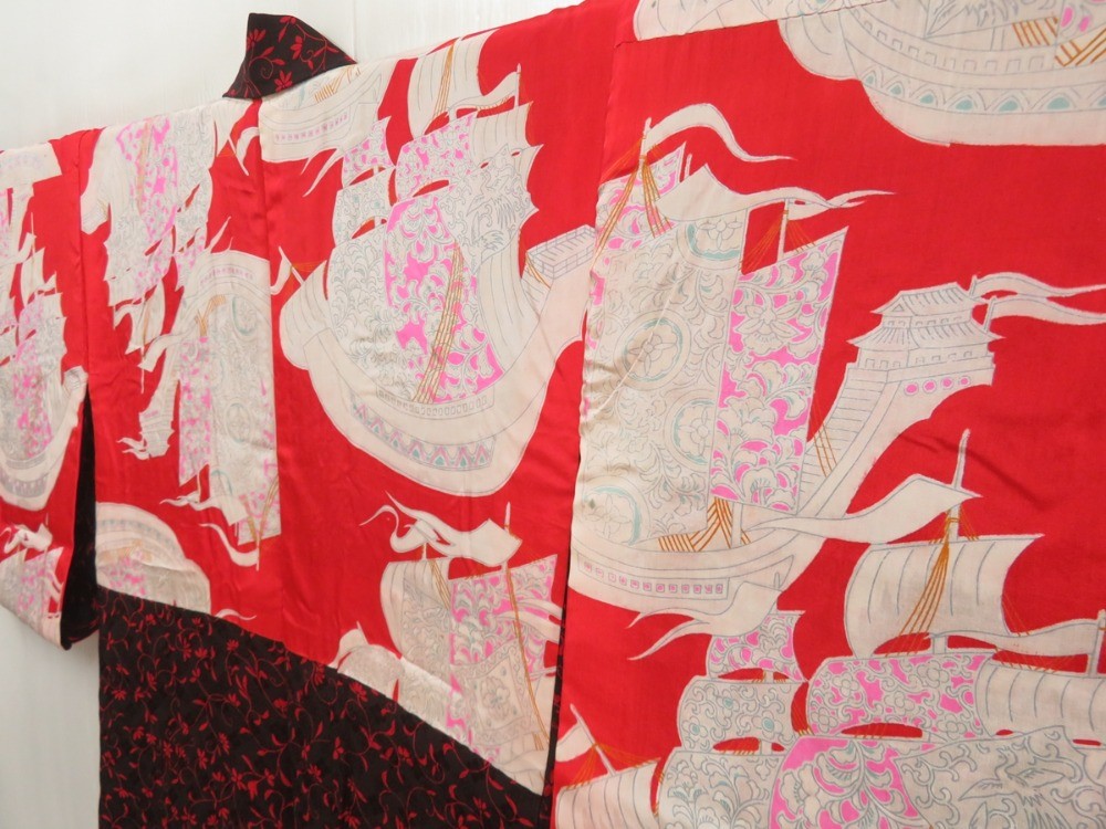 как выглядит 5803T08z370 Vintage Japanese Kimono Silk HAORI Flower Black Red фото