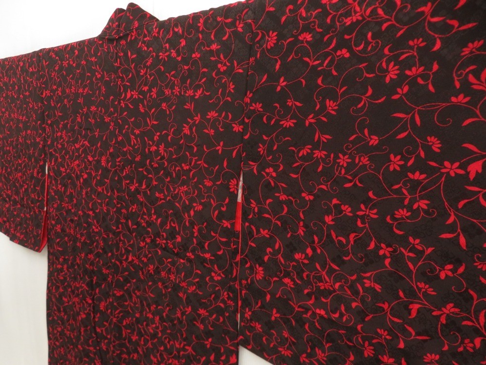 5803T08z370 Vintage Japanese Kimono Silk HAORI Flower Black Red