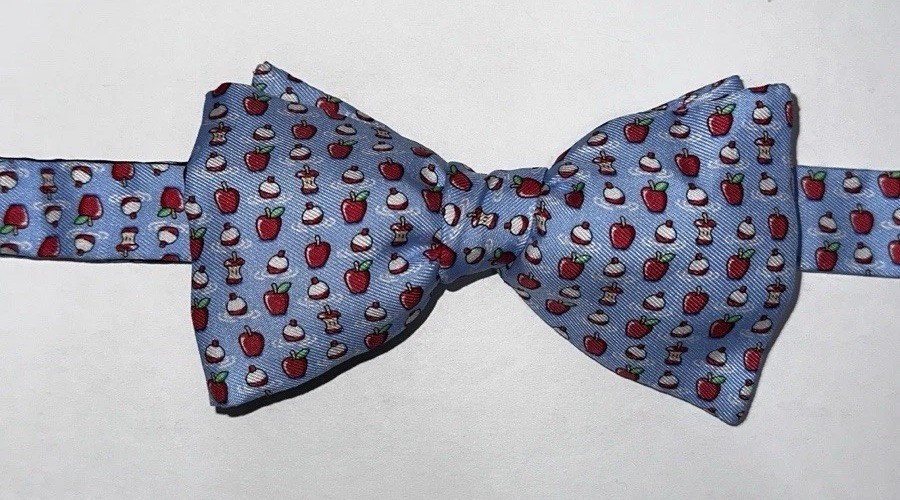 Vineyard Vines Bobbin' For Apples Boys Silk Bow Tie in Jake Blue NEW HTF