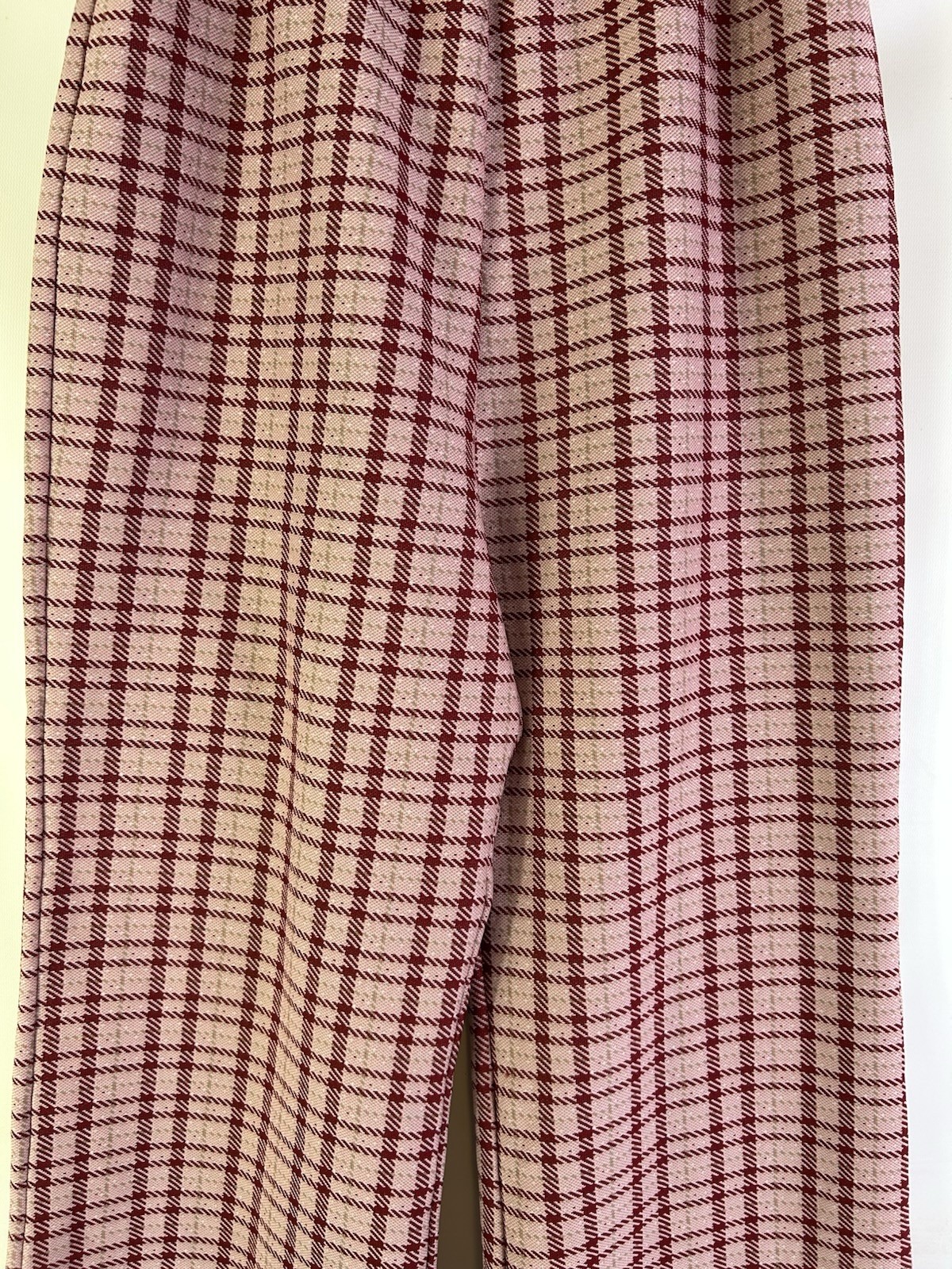 Vintage 70s Womens Large Pink Gingham Plaid Knit High Rise Wide Leg Pants Preppy