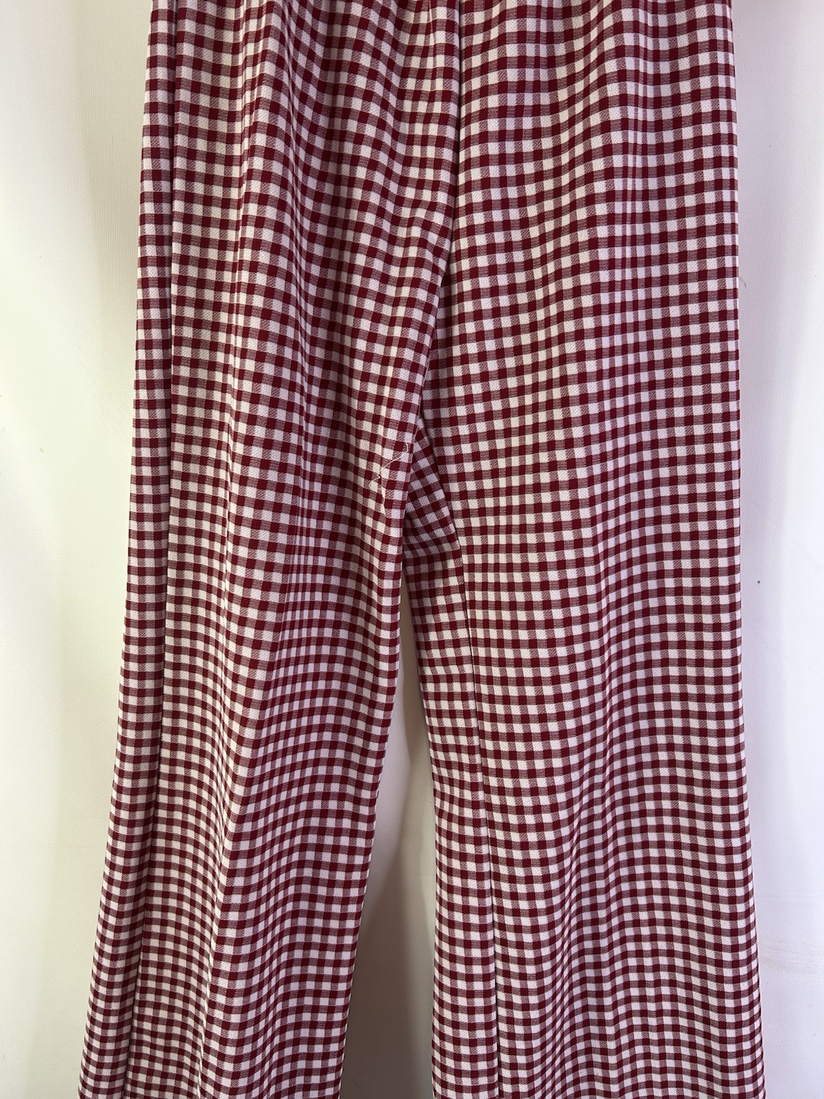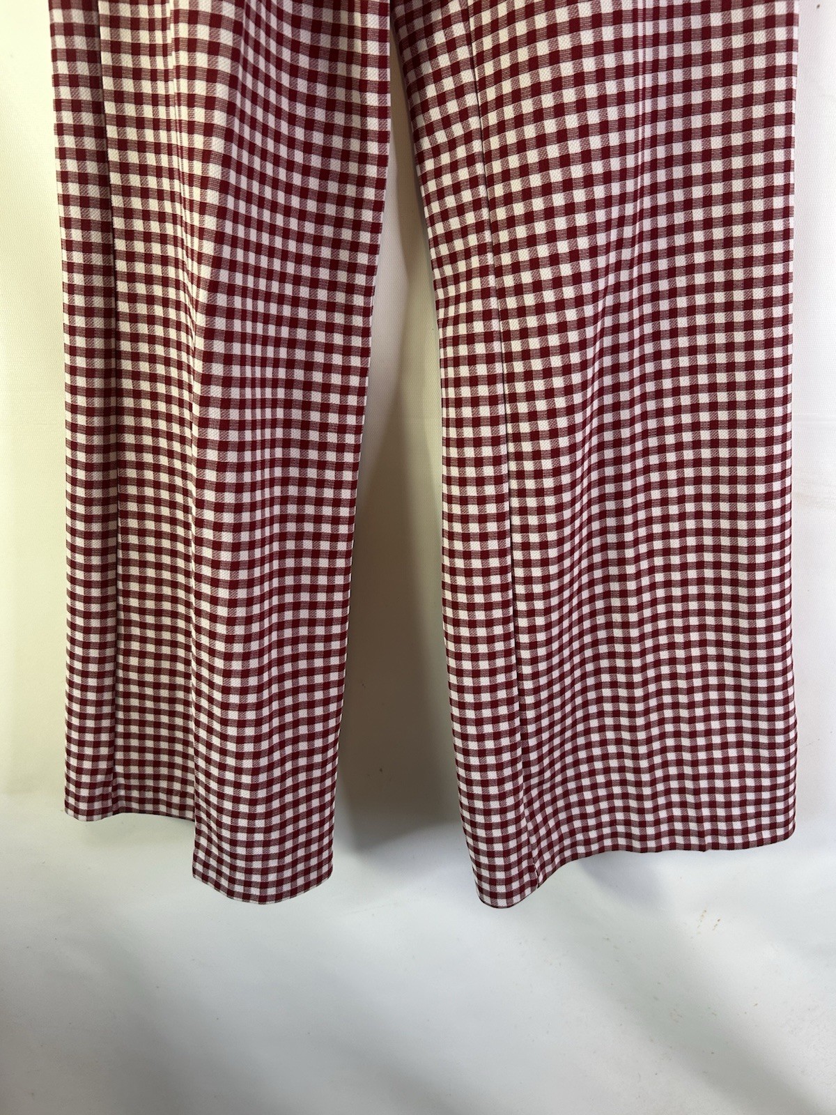 как выглядит Vintage 70s Womens 16 Large Gingham Plaid Knit High Rise Wide Leg Pants USA фото