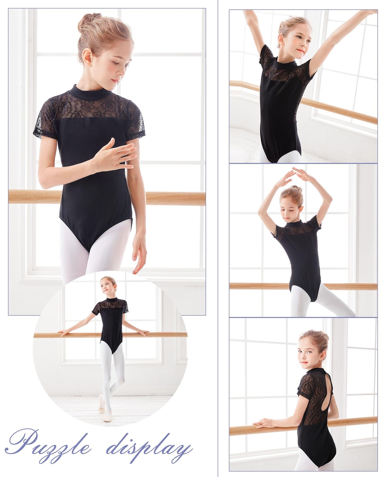 Girls High Neck Ballet Leotard Lace Dance Costume for Toddler Little Big Kids