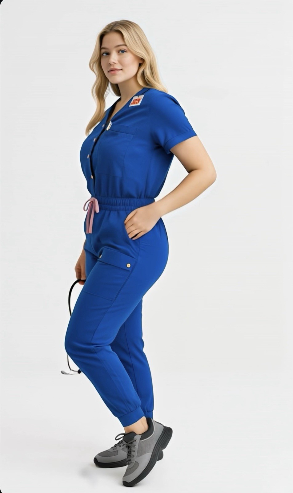 One Piece Jumpsuit Scrub In Royal Blue. Zipper In The Crotch For Bathroom Access