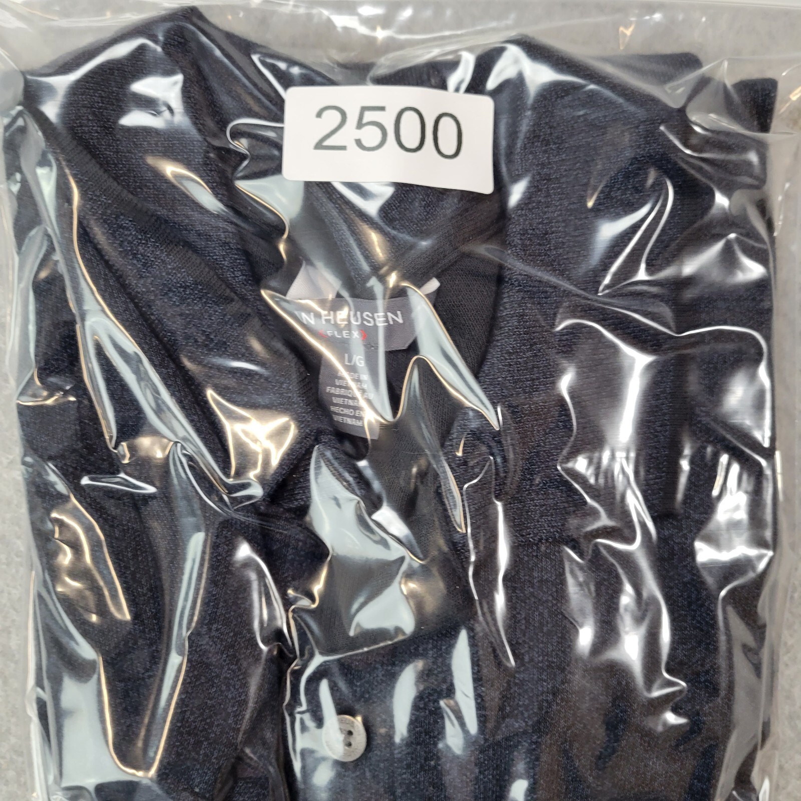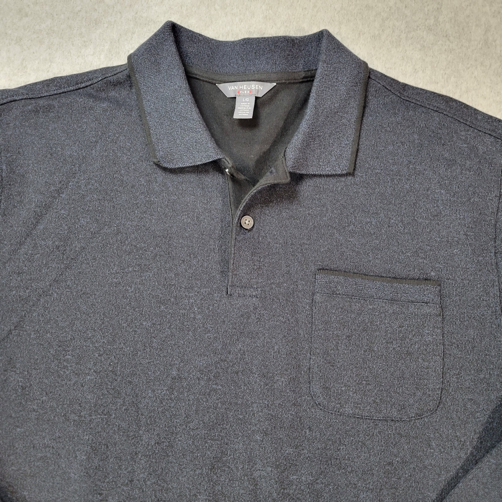 Van Heusen Sweater Polo Black Charcoal Flex Fit 1/4 Button Up Mens Large