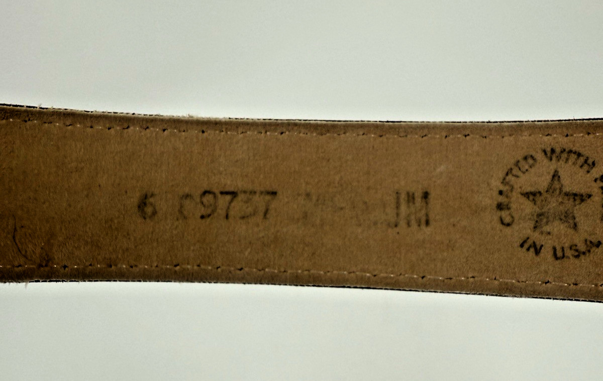 VINTAGE HAND TOOLED EMBOSSED LEATHER BELT BROWN WOMENS USA MADE SIZE MEDIUM