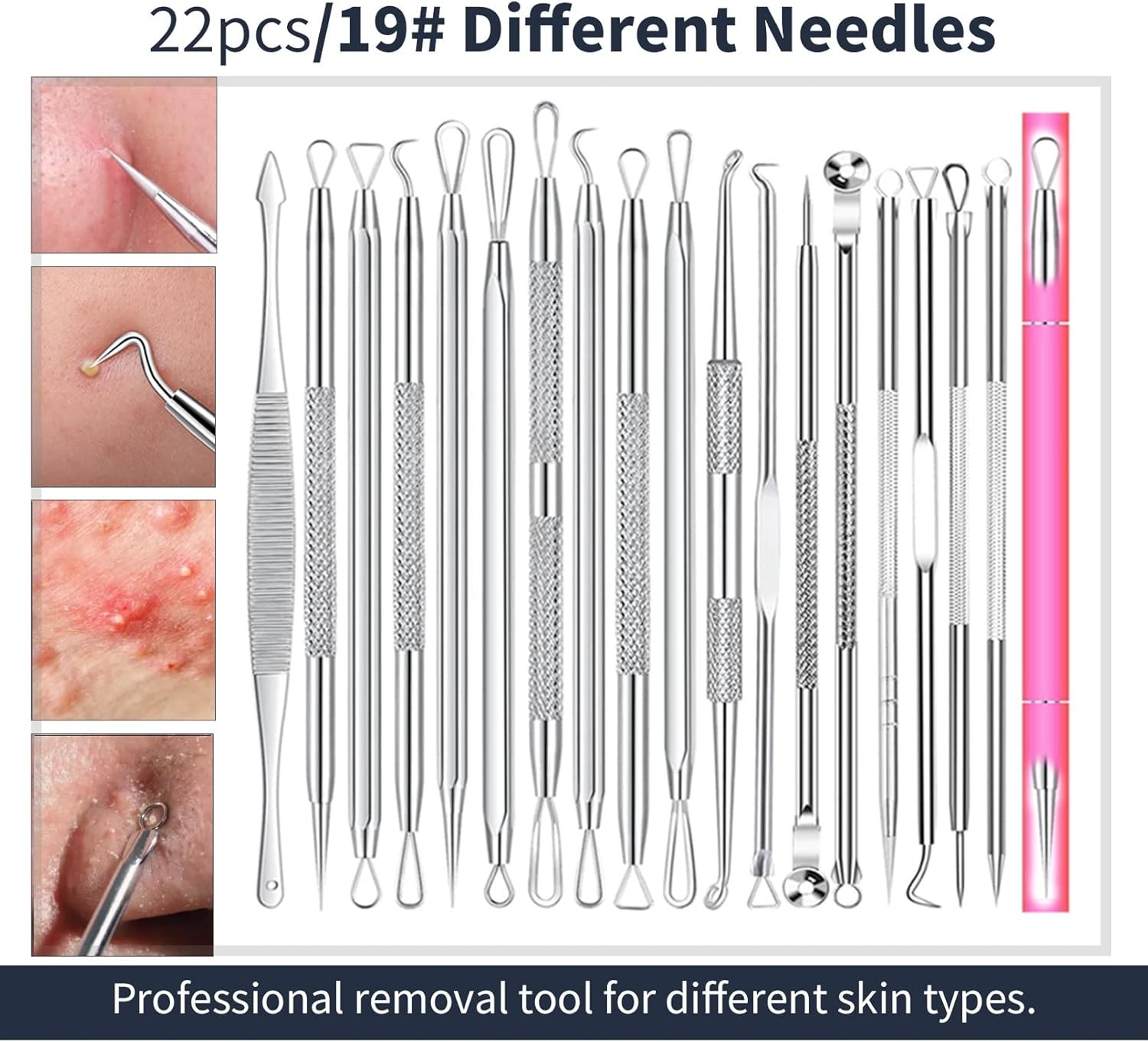 2025 Professional Pimple Popper Tool Kit - 22 PCS Blackhead Remover Silver-22