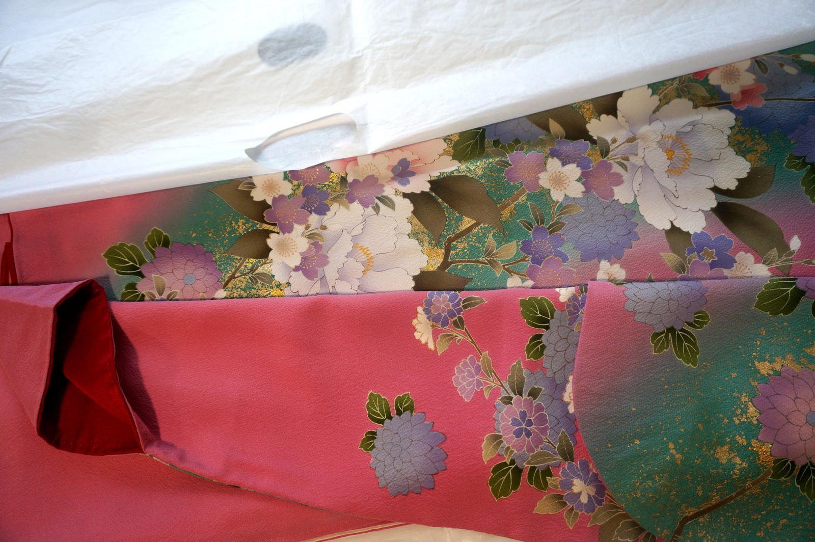 как выглядит Japanese kimono SILK"FURISODE" Obi-Jime,Plants,GLD leaf,Pink,L53",Lsize..4628 фото