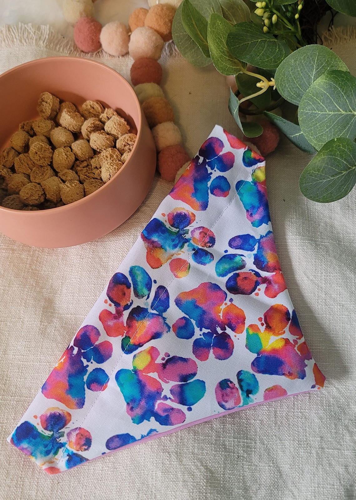 Colorful Paw Prints Over the Collar Dog Bandana That Slips onto Their Existin...