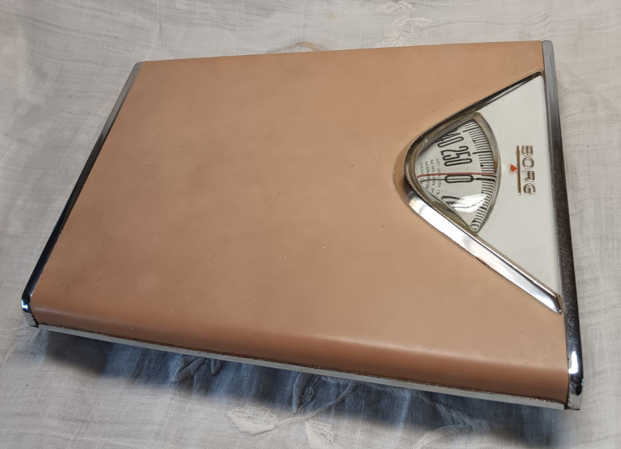 • Vintage MCM BORG bathroom Scale Tan w Chrome