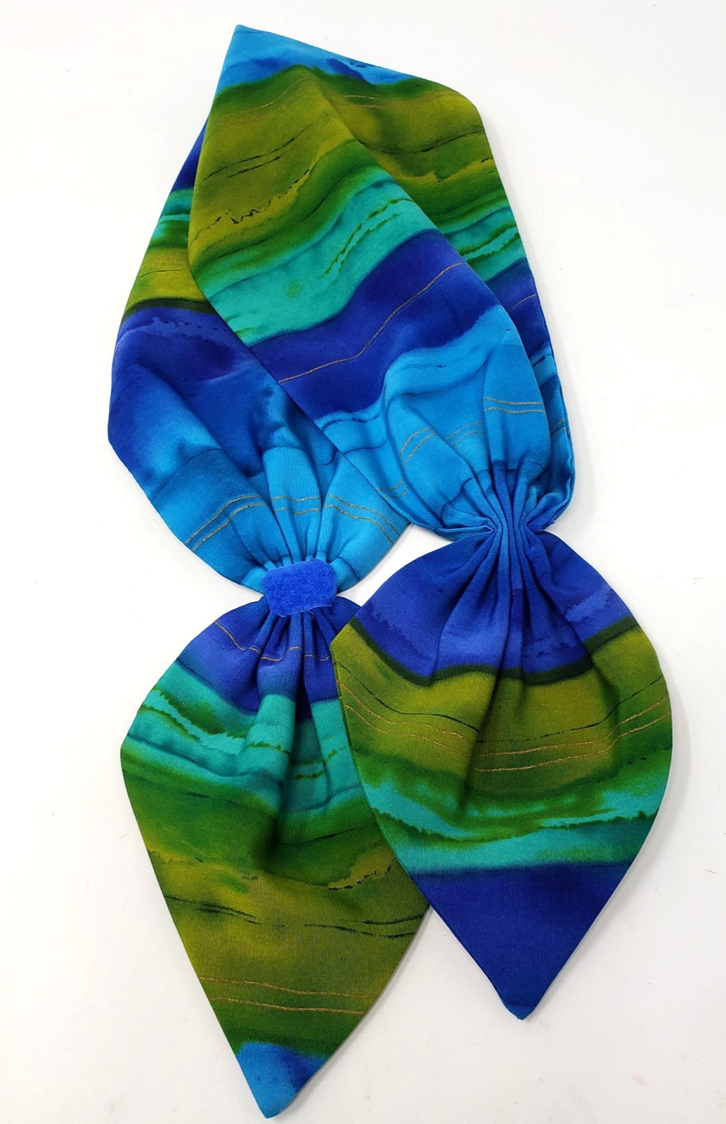 как выглядит Vintage 1970s Mademoiselle Scarf Ascot Polyester Blue Green Hook Loop фото