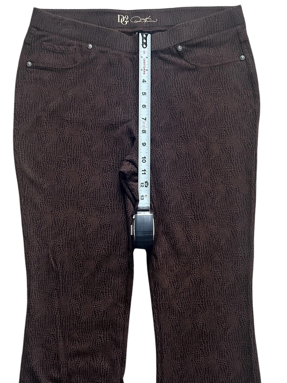 как выглядит DG2 Diane Gilman Pants Womens PL Brown Pull On Stretch Bootcut Reptile Snakeskin фото