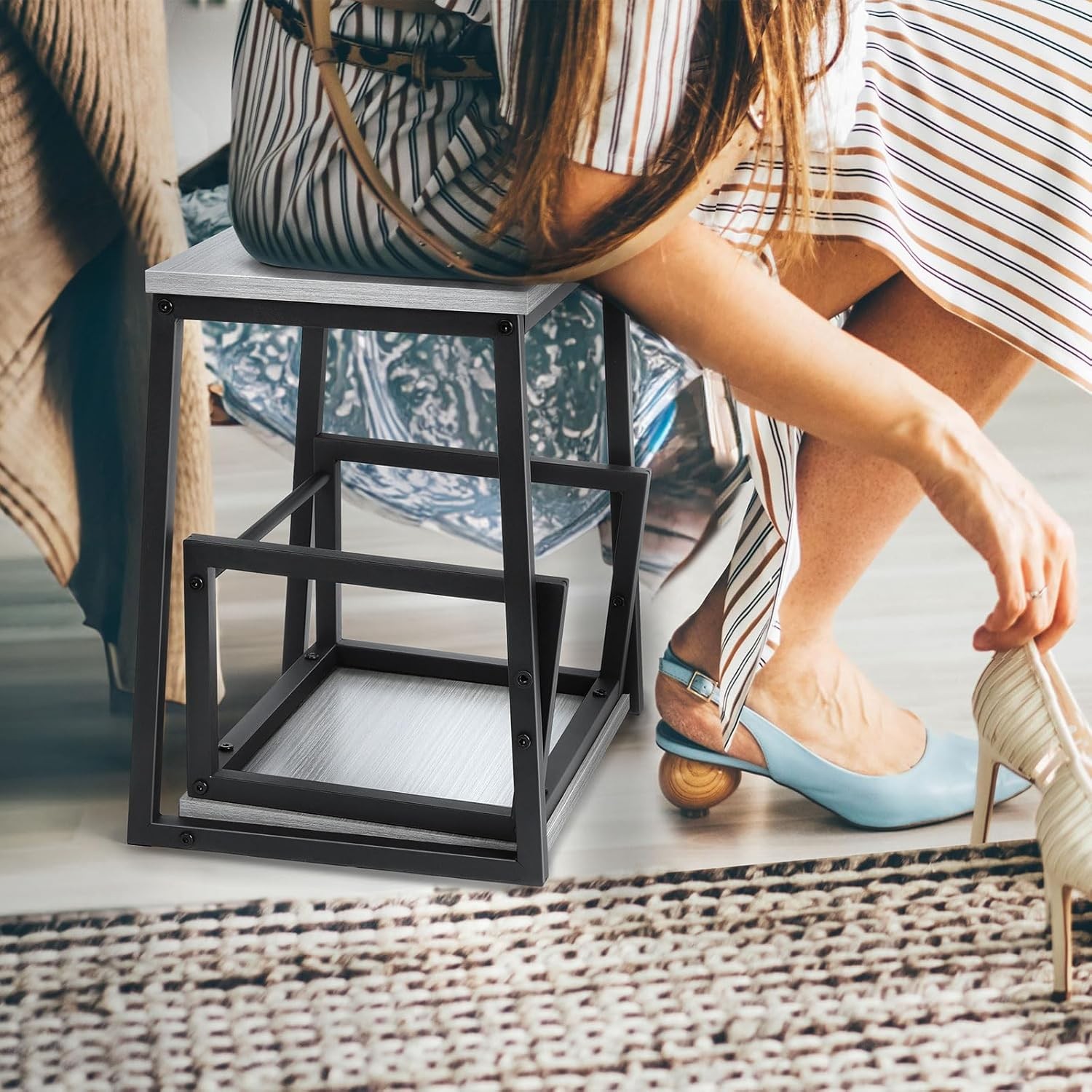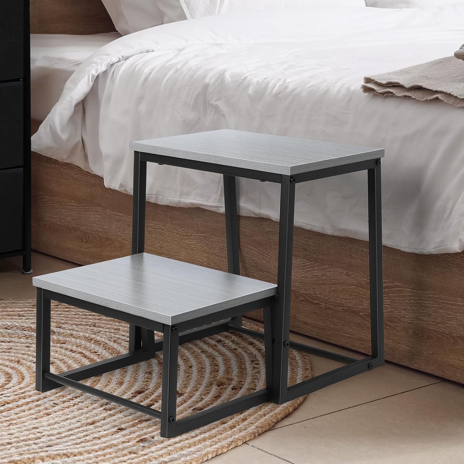 2-Step Stool Heavy Duty Bed Side Step Stools Ladder for High Beds Adults Toddler
