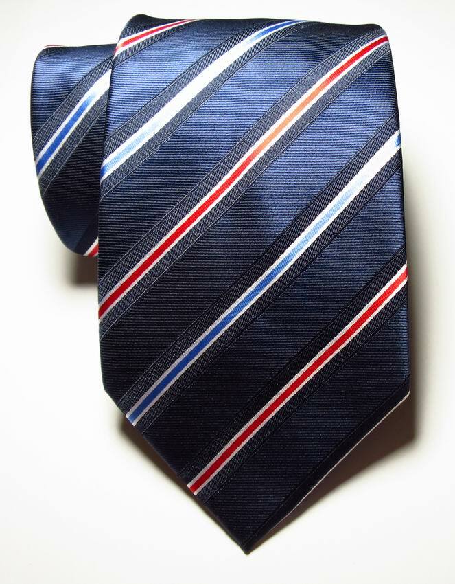как выглядит New Classic Striped Dark Blue Red White JACQUARD WOVEN Silk Mens Tie Necktie фото