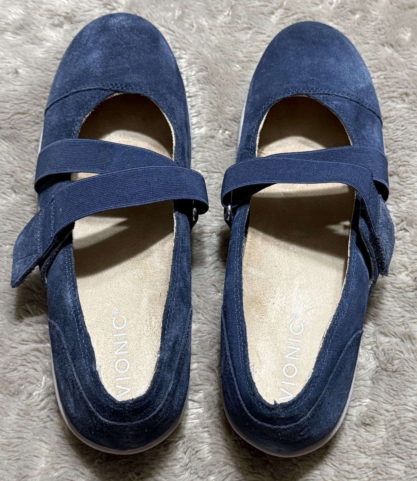 Vionic Shelby Blue Suede Mary Jane Comfort Loafer Shoes Womens Size 8.5