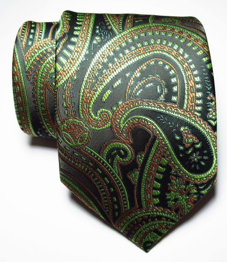 New Classic Paisley Black Green Gold JACQUARD WOVEN Silk Men's Tie Necktie