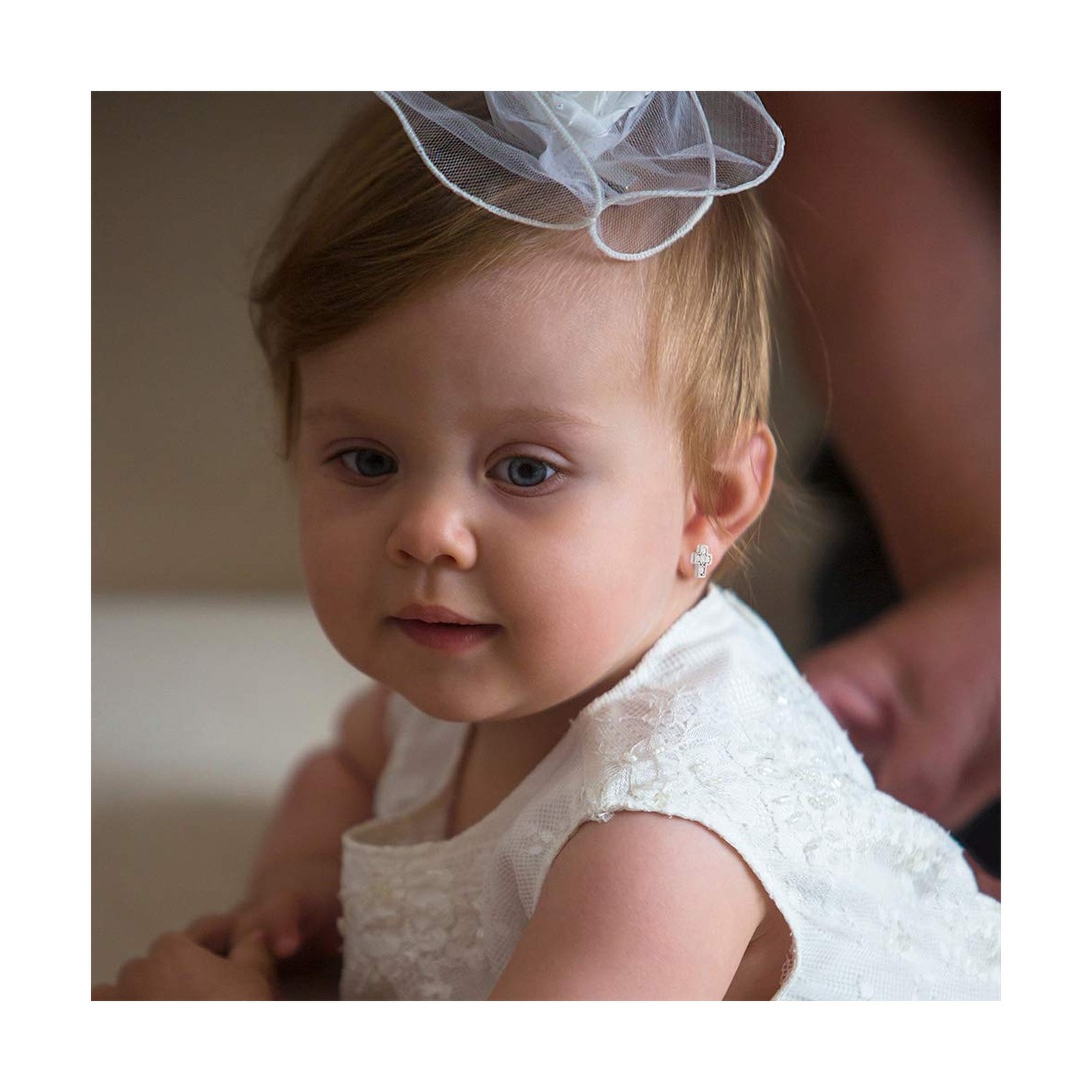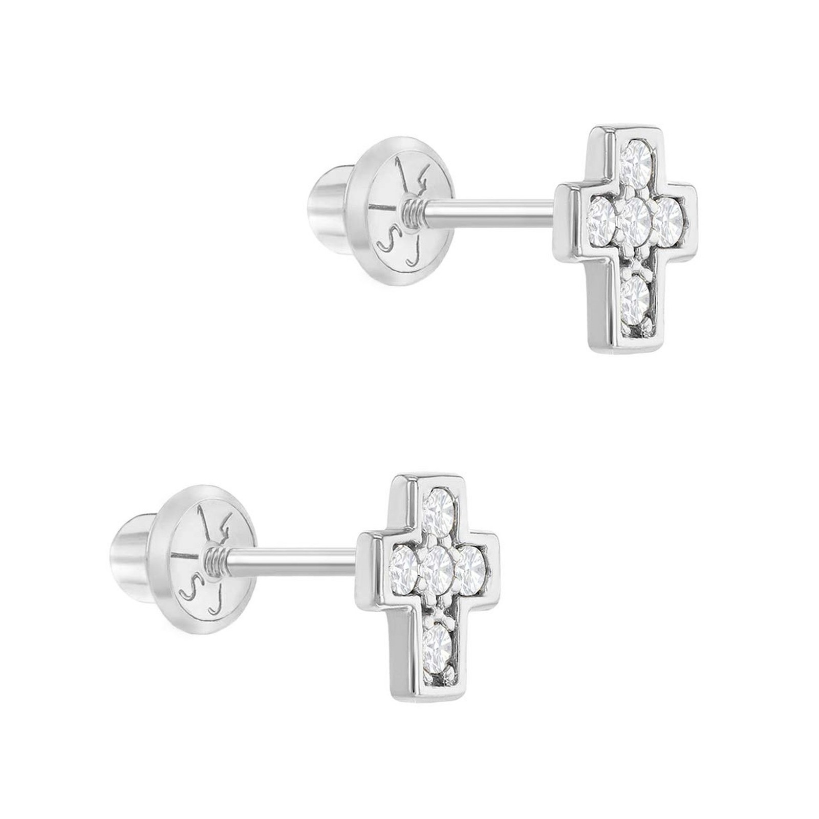 14k White Gold Clear Cubic Zirconia Little Cross Screw Back Earrings for Girl...