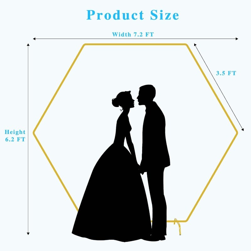 7.2FT Hexagon Wedding Arch, Metal Arch Backdrop Stand for Wedding Party Gold