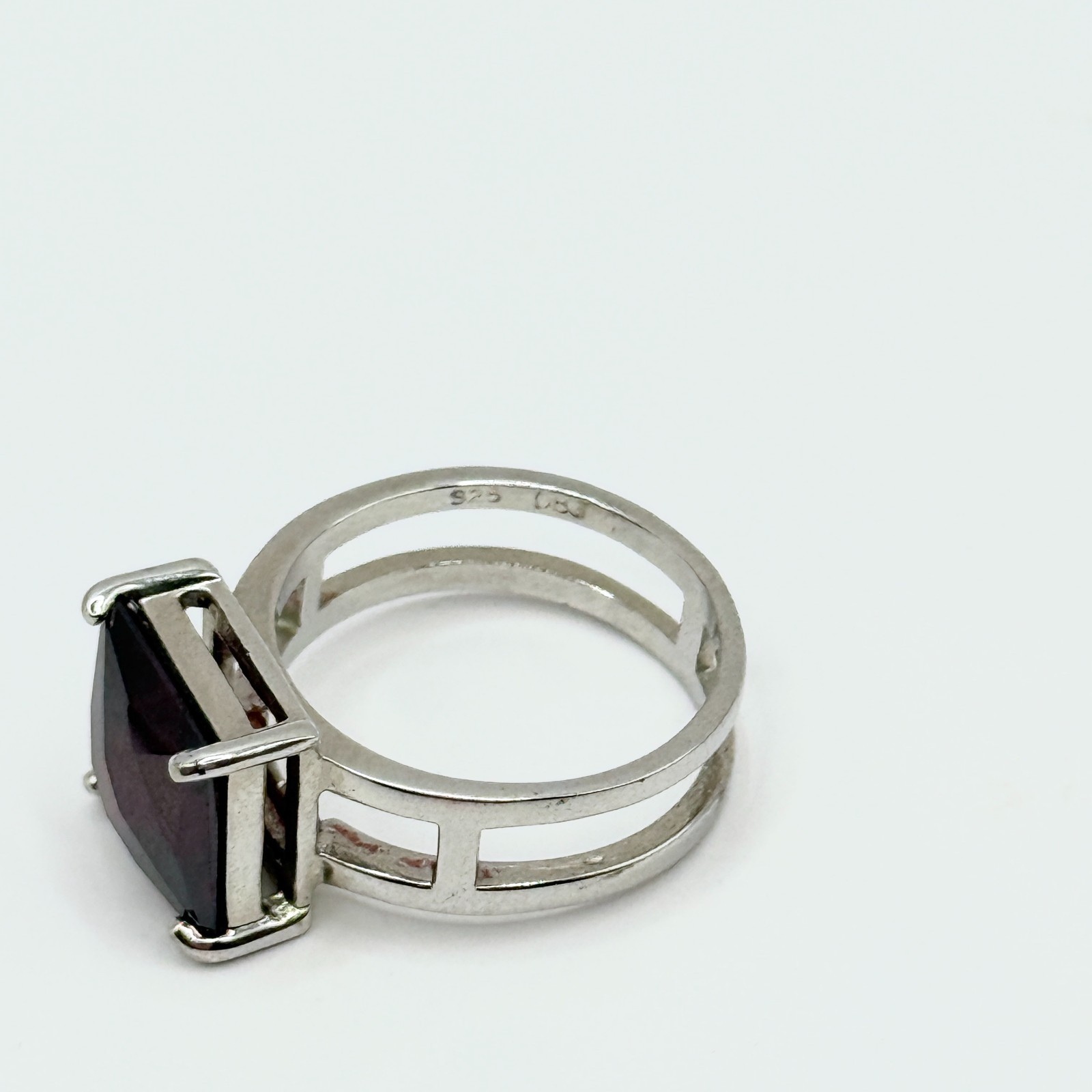 как выглядит Sterling Silver 925 Red Square Cut Garnet Ring Size 8.25 Double Band Signed Nice фото