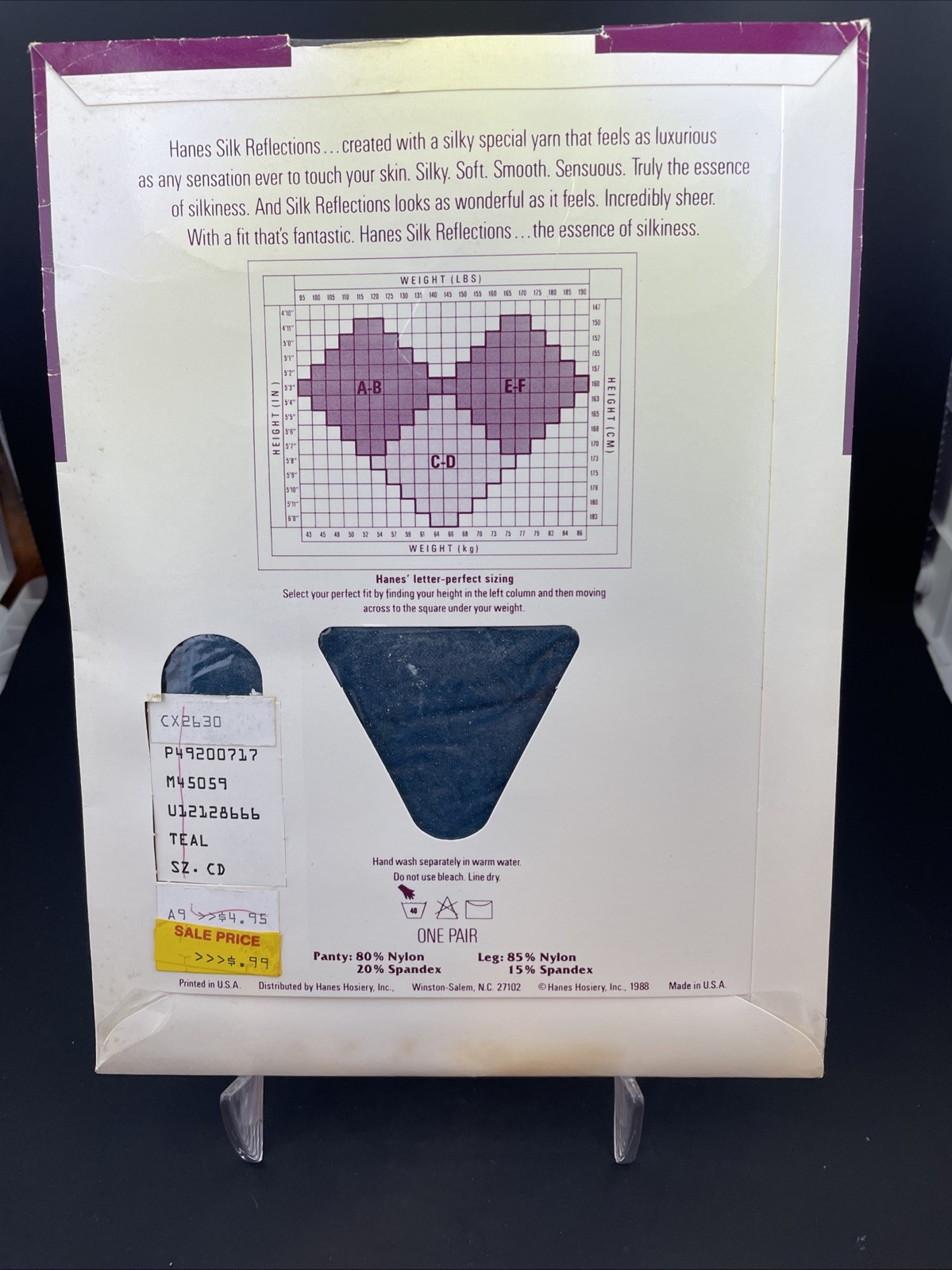 Hanes Silk Reflections Pantyhose Silky Control Top Sandalfoot Teal Size CD