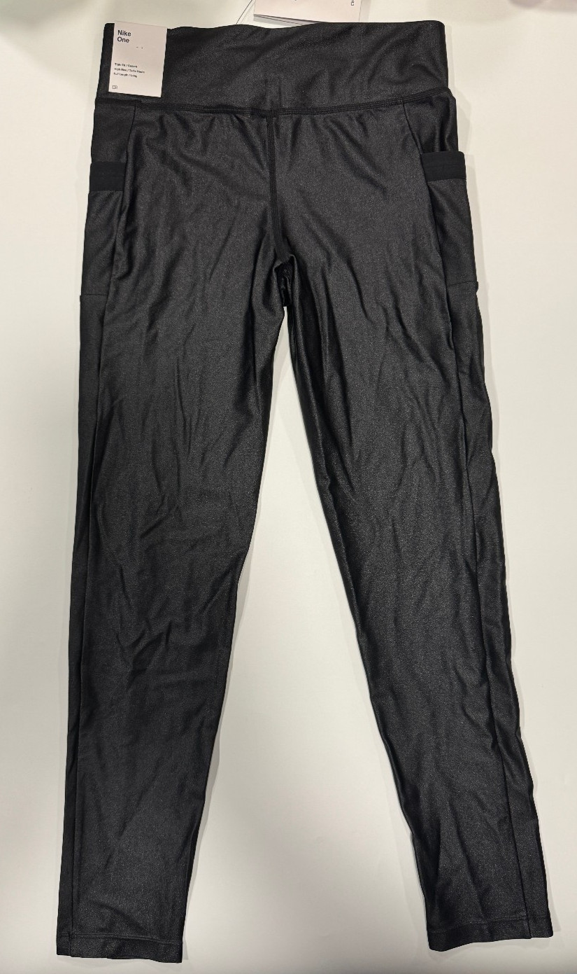 как выглядит Nike Dri-FIT One Girls Leggings with Pockets Black/Anthracite NWT SIZE L фото