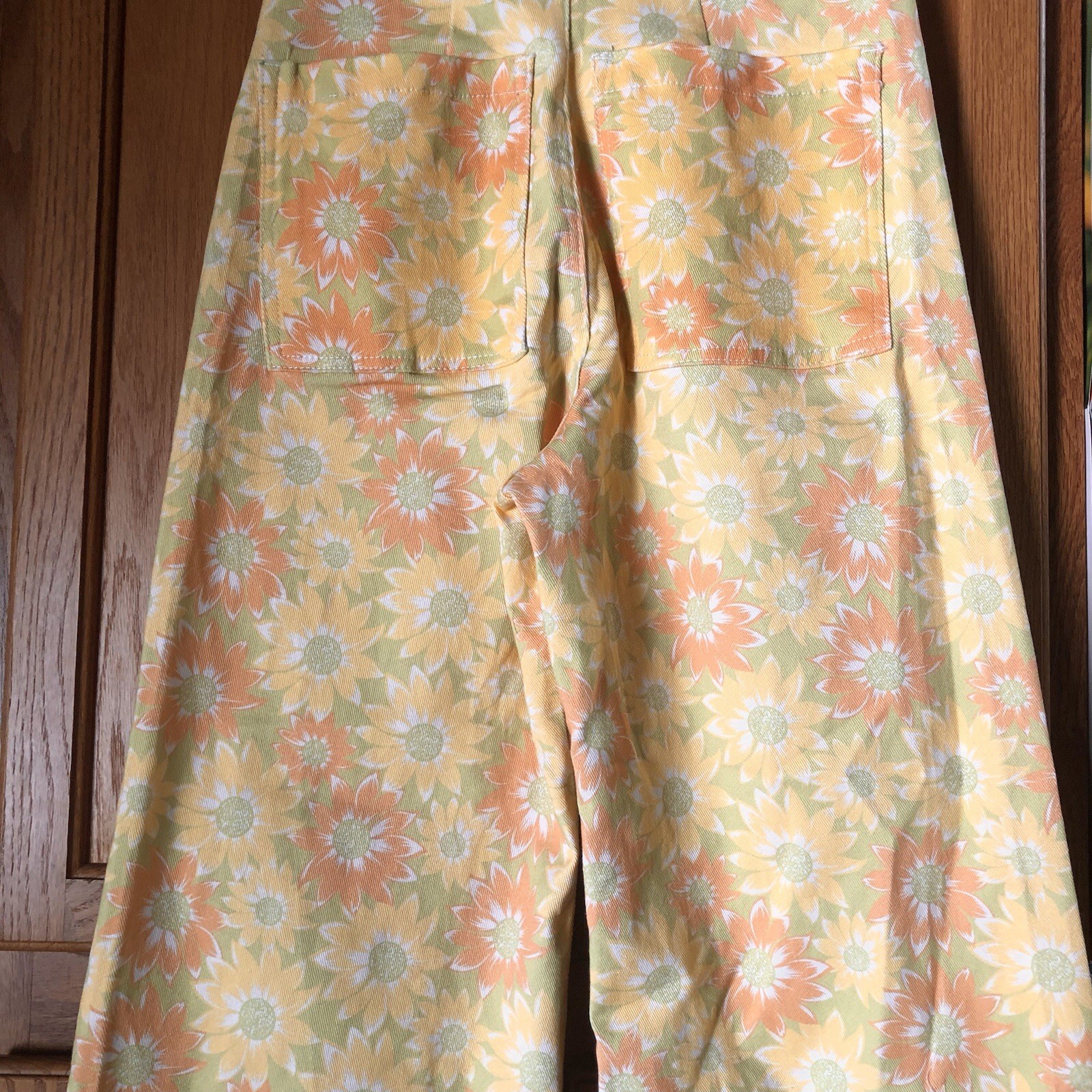 как выглядит Women s 70 s Hippie High Waisted Boho Floral Denim Wide Leg Jeans Cut Off Size 4 фото