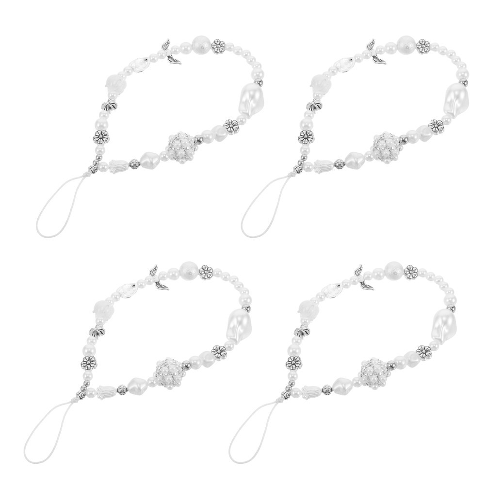 4 Pcs Bow Phone Charm Beads Strap with Clip Bow-knot Beaded Mobile Chain