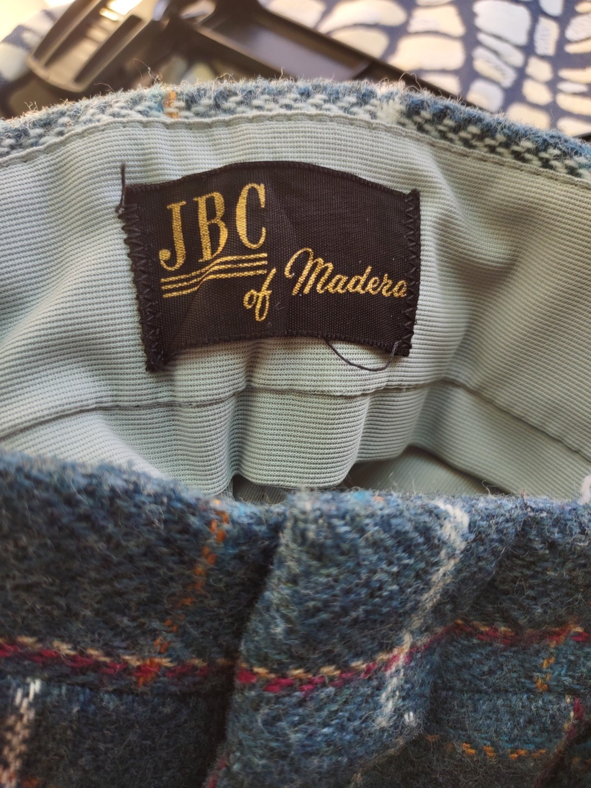 70s Vintage Unisex Skinny Plaid Wide Bell Bottom Pants JBC Of Madera 24 Waist