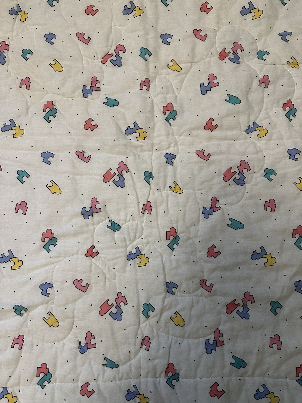 Vtg Disney Dundee Baby Mickey Minnie Mouse Puzzle Piece Crib Blanket 41 X 32