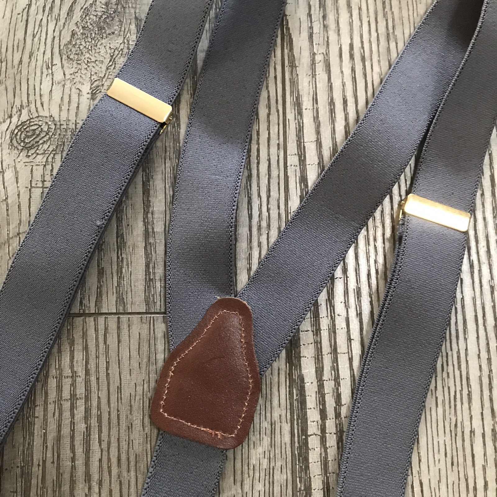 как выглядит Vintage Pelican Dark Gray Suspenders Elastic with Gold Tone Clasp USA фото