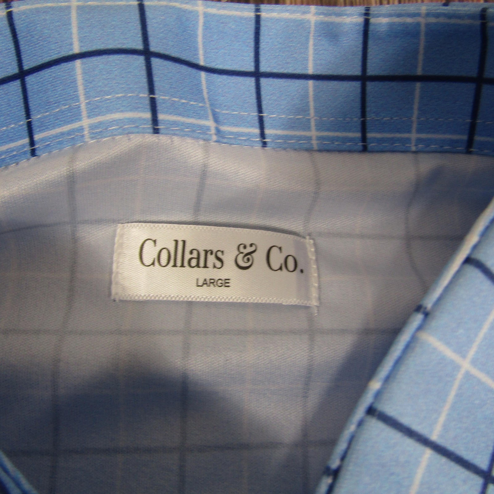 Collars Co. Polo Shirt Mens Large Blue Check Plaid Dress Collar Short Sleeve