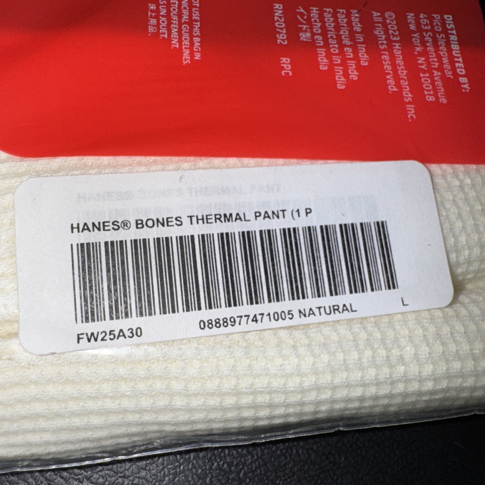 как выглядит Supreme x Hanes Bones Waffle Thermal Pants White- Size L FW25 Brand New фото