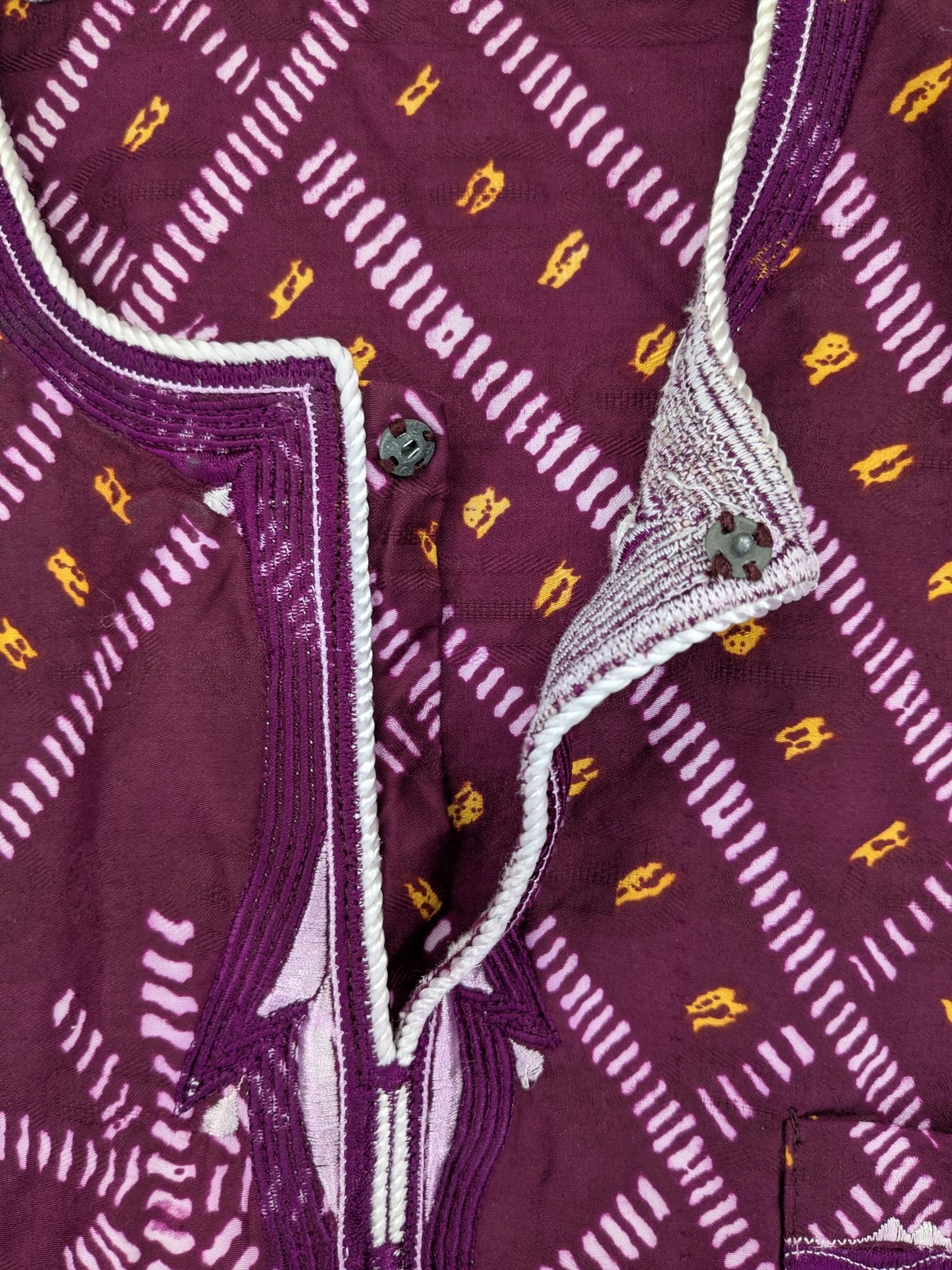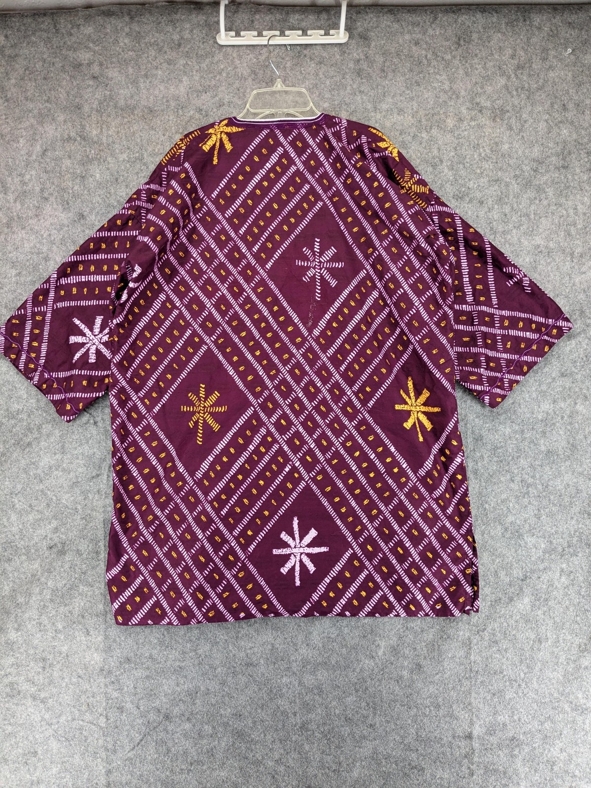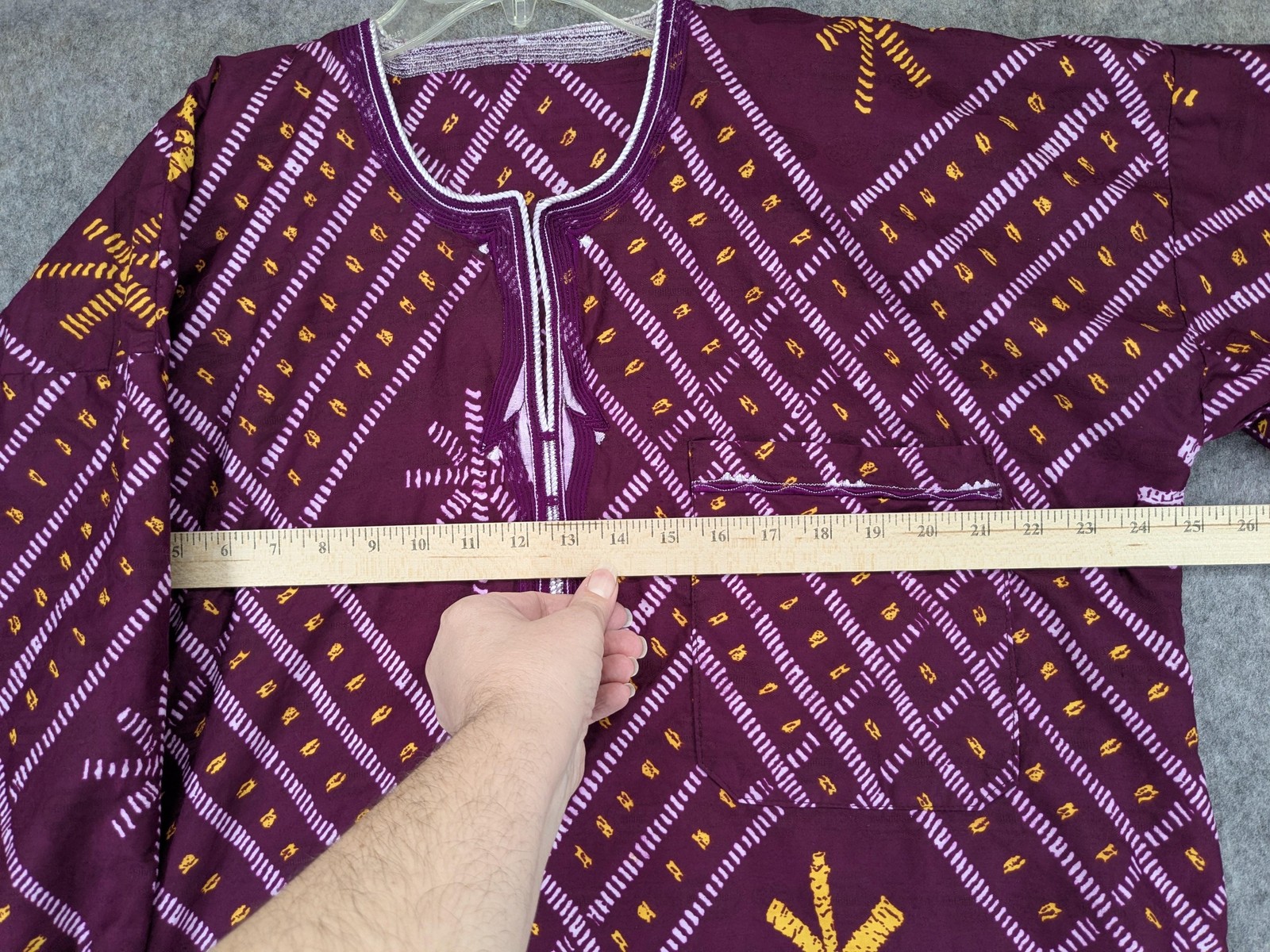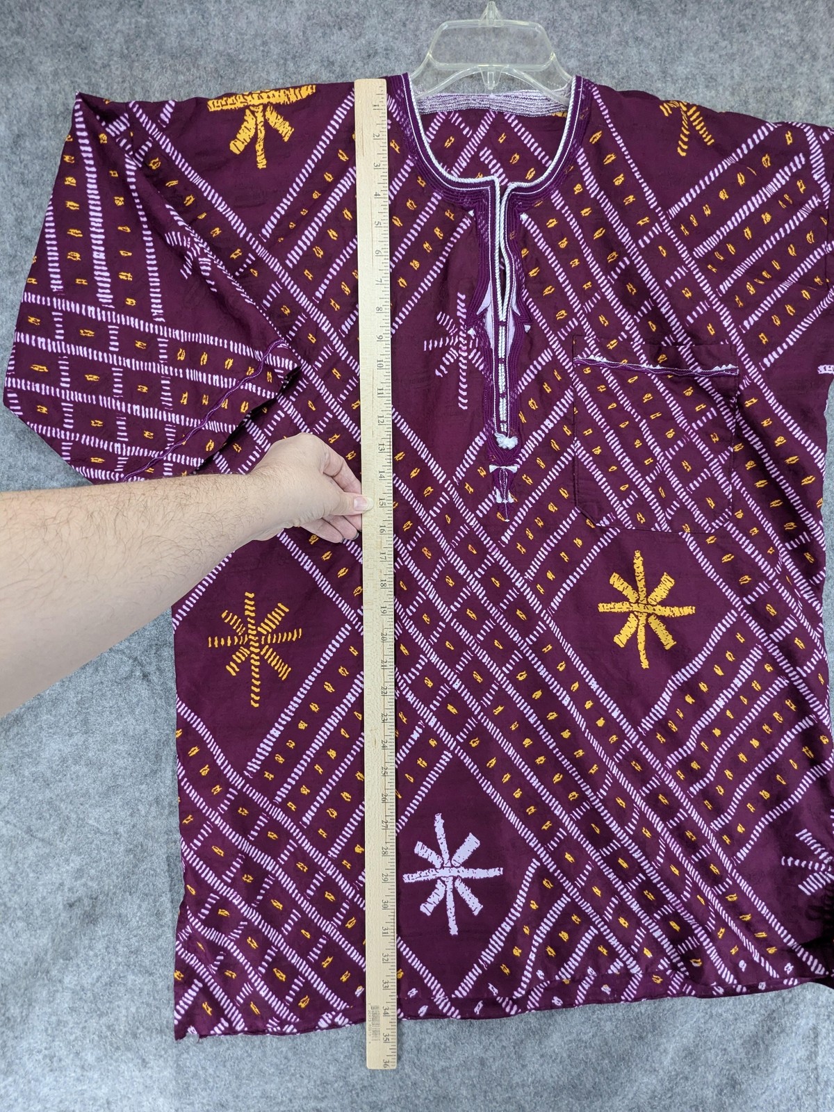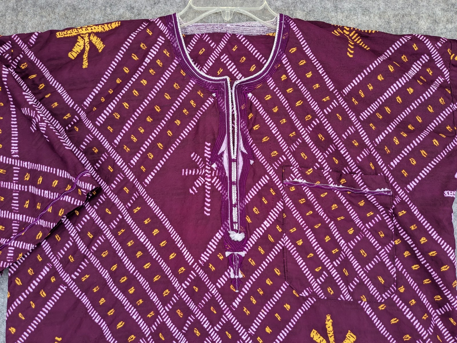 African Dashiki Embroidered Purple Batik Pattern Top XL XXL Traditional Shirt