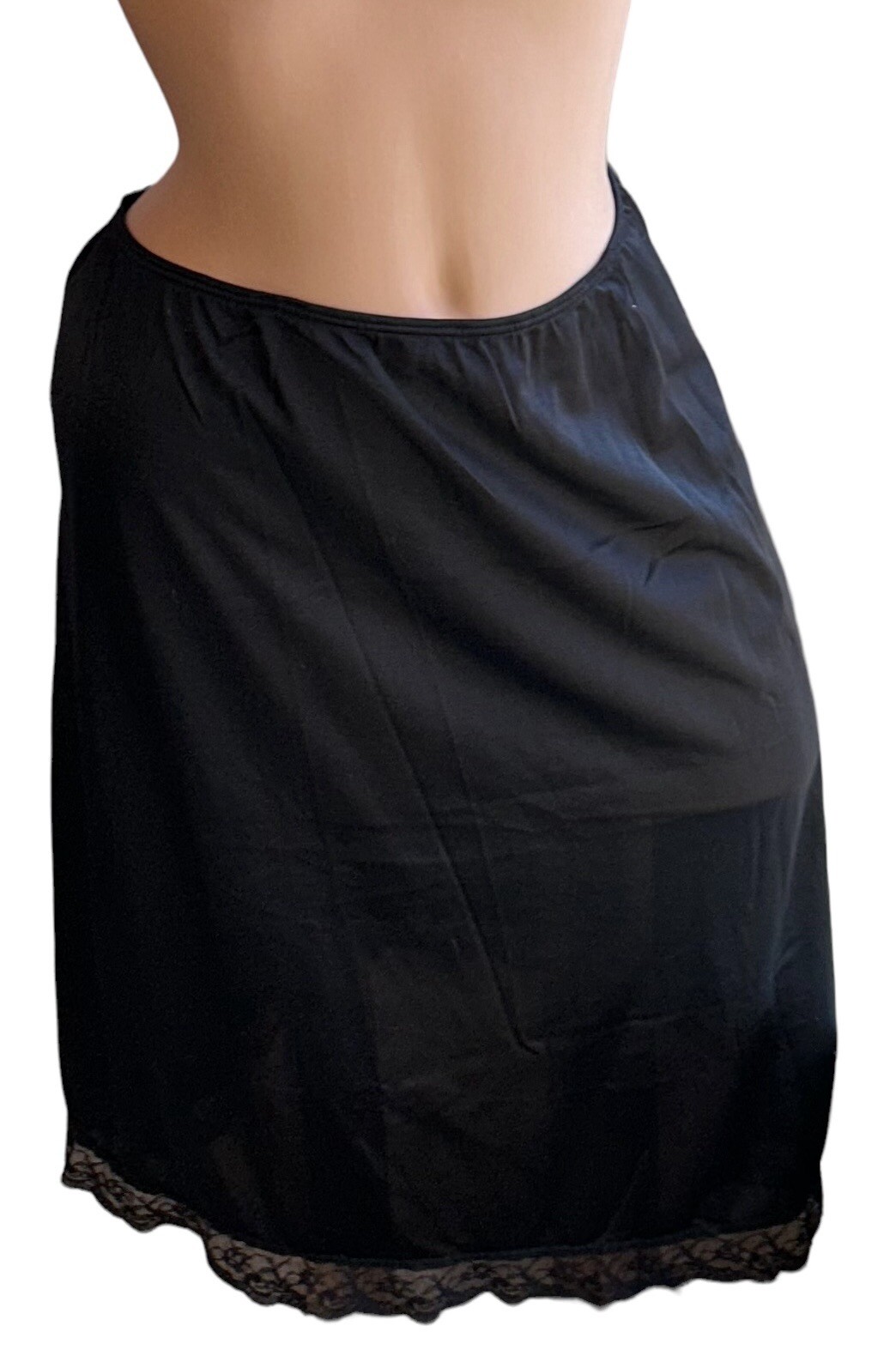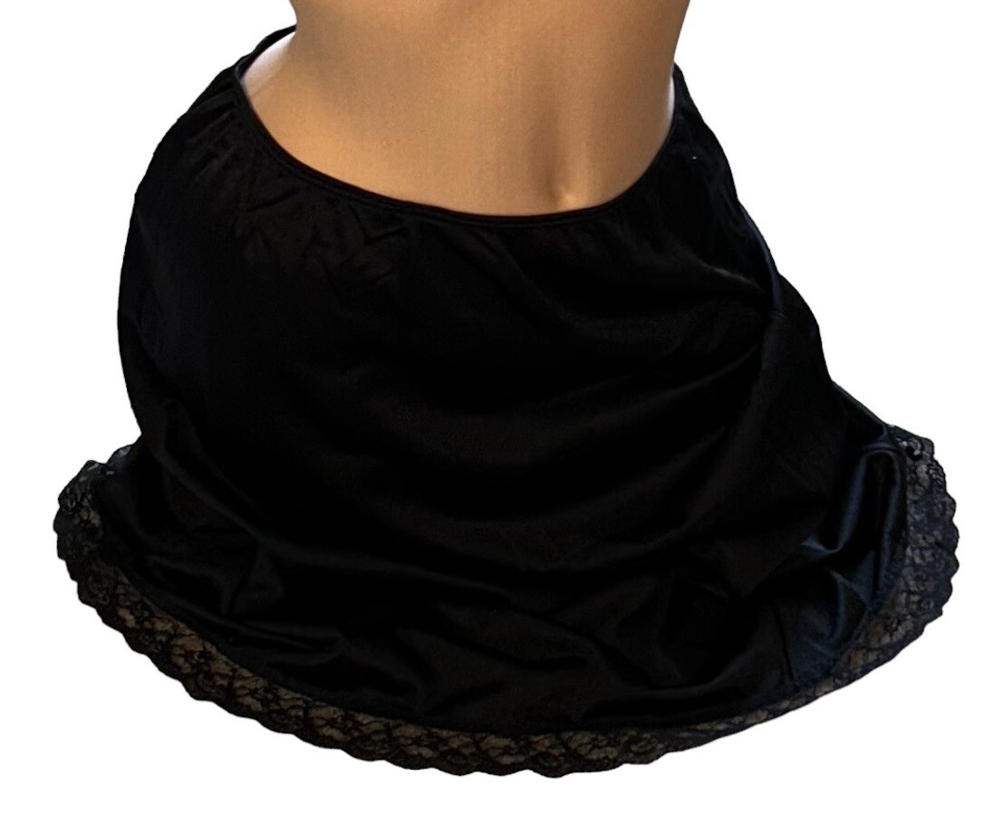 MAIDENFORM Vintage Black Shiny Satin Lace Trim Hem Half Slip Womens M