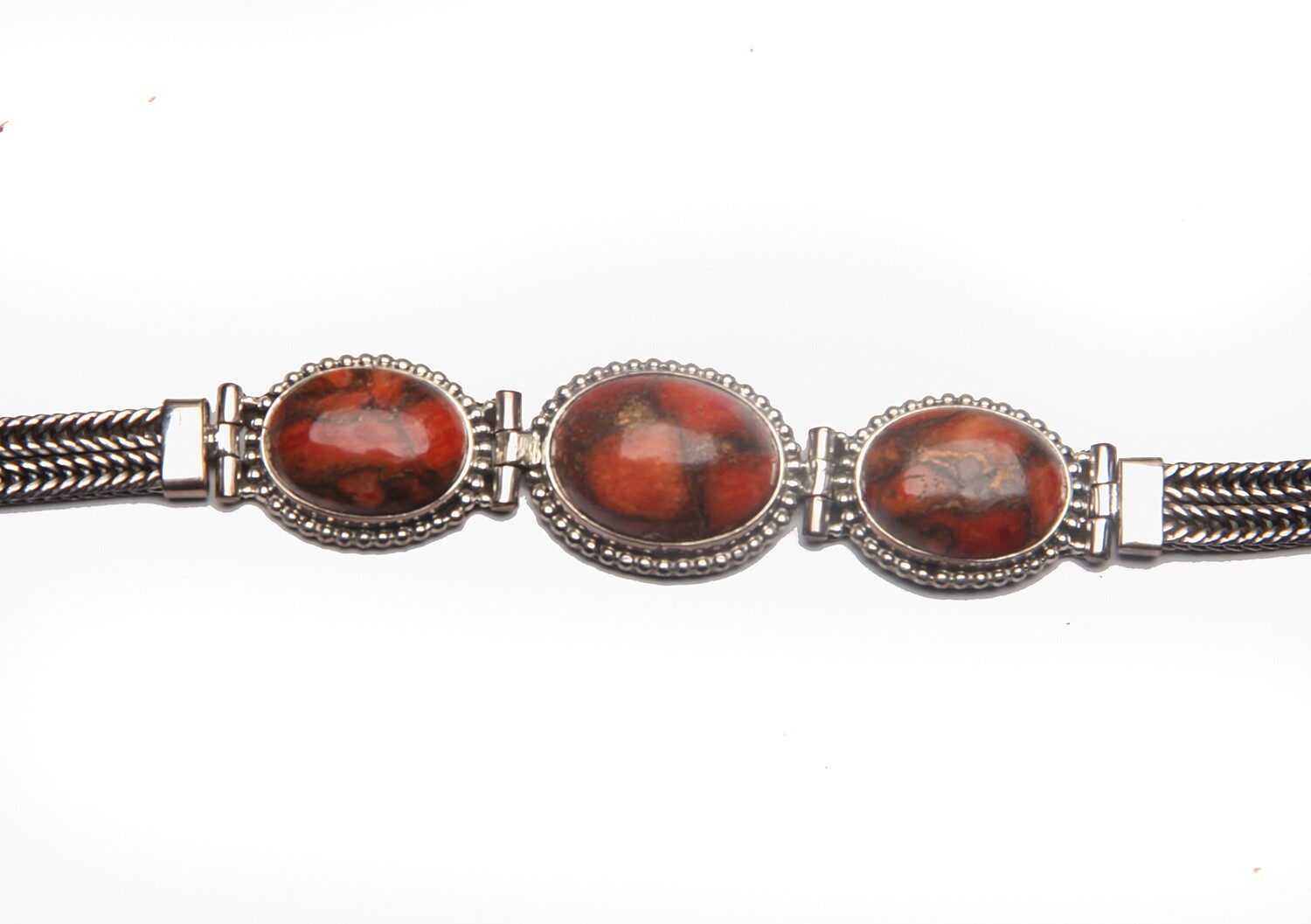 как выглядит Artisan Crafted Mojave Orange Turquoise Bracelet In Sterling Silver 7.5" фото