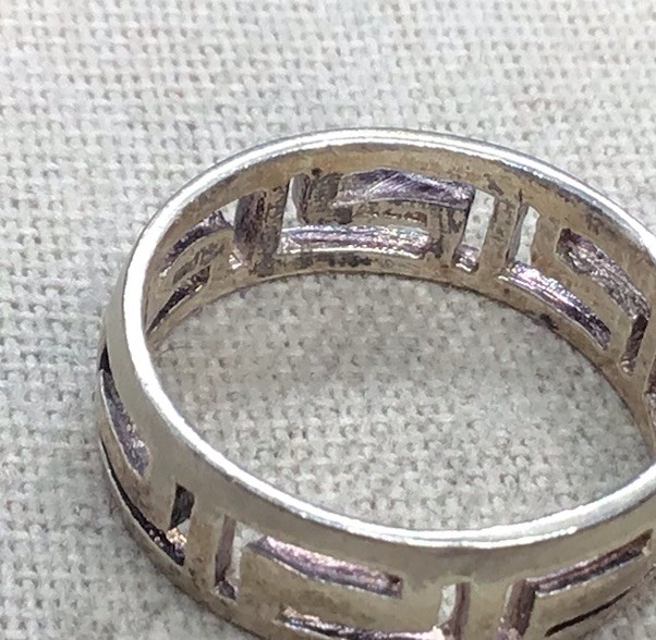 как выглядит Vintage Sterling Silver 925 Greek Key Design Band Sz 8.5 Y1626 фото