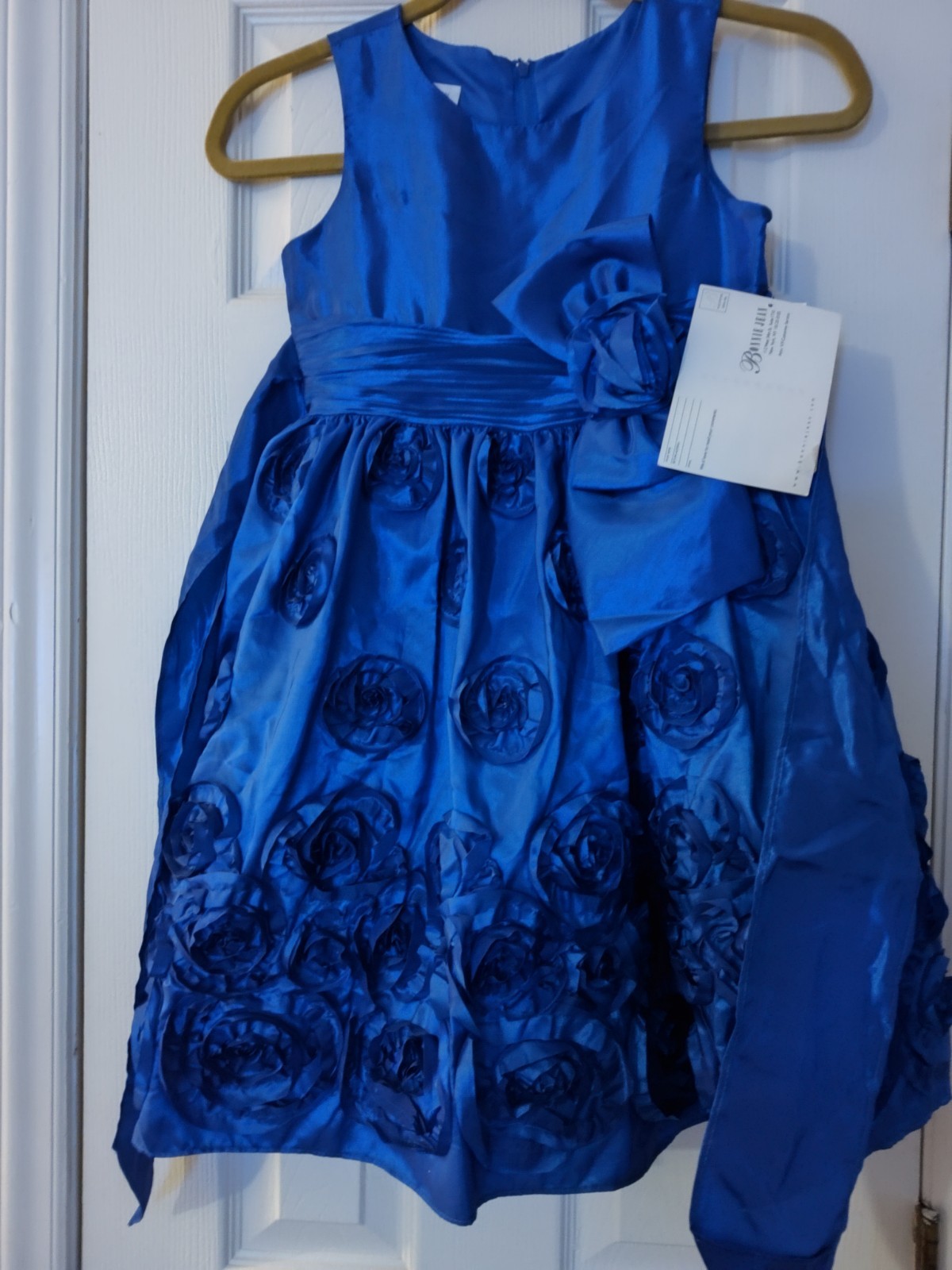 NWT Bonnie Jean Girls Dress Sz 10 Party Formal Puffy Blue Satin Rose