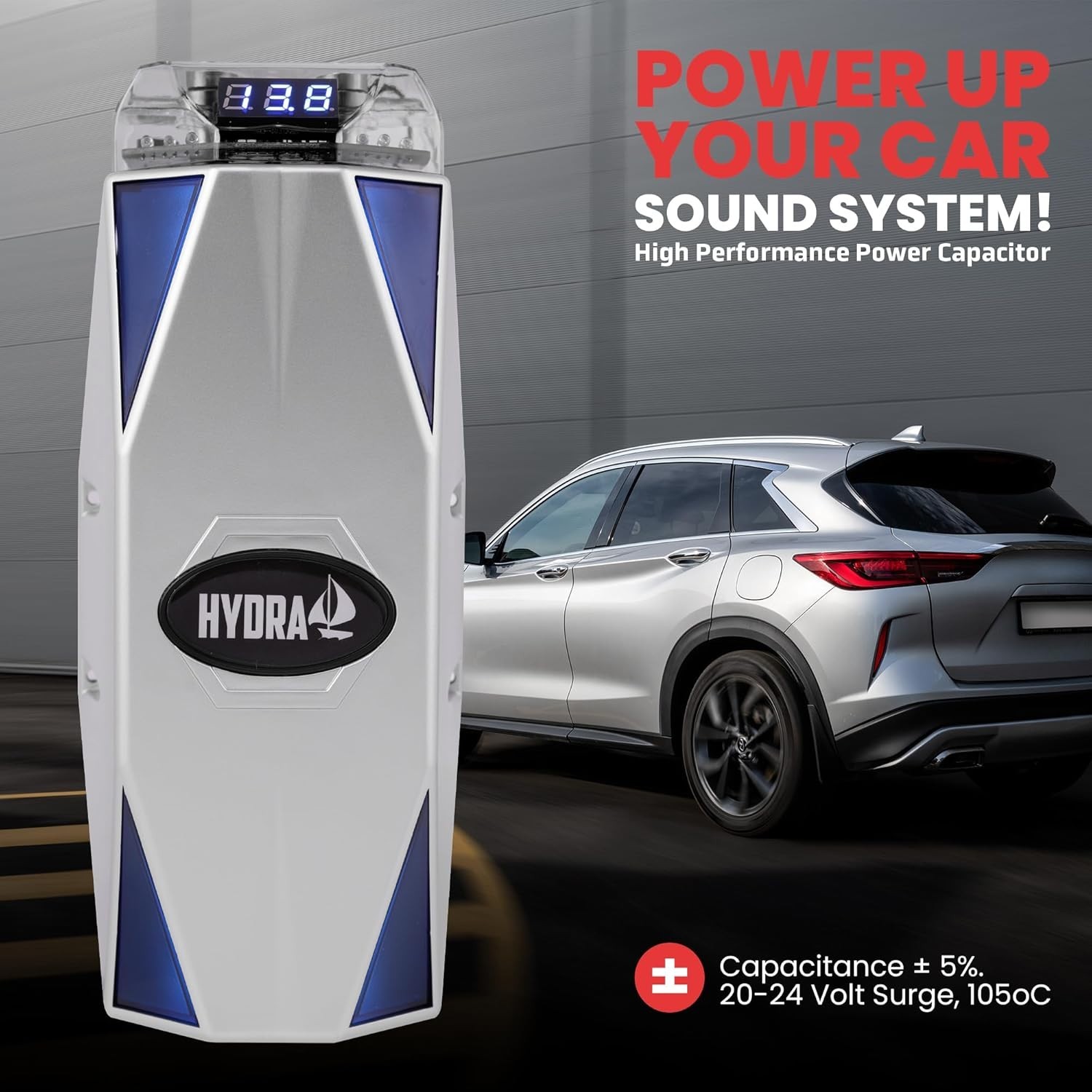 Pyle 0.3 Farad Digital Power Capacitor, High-Performance Car Audio Accessory
