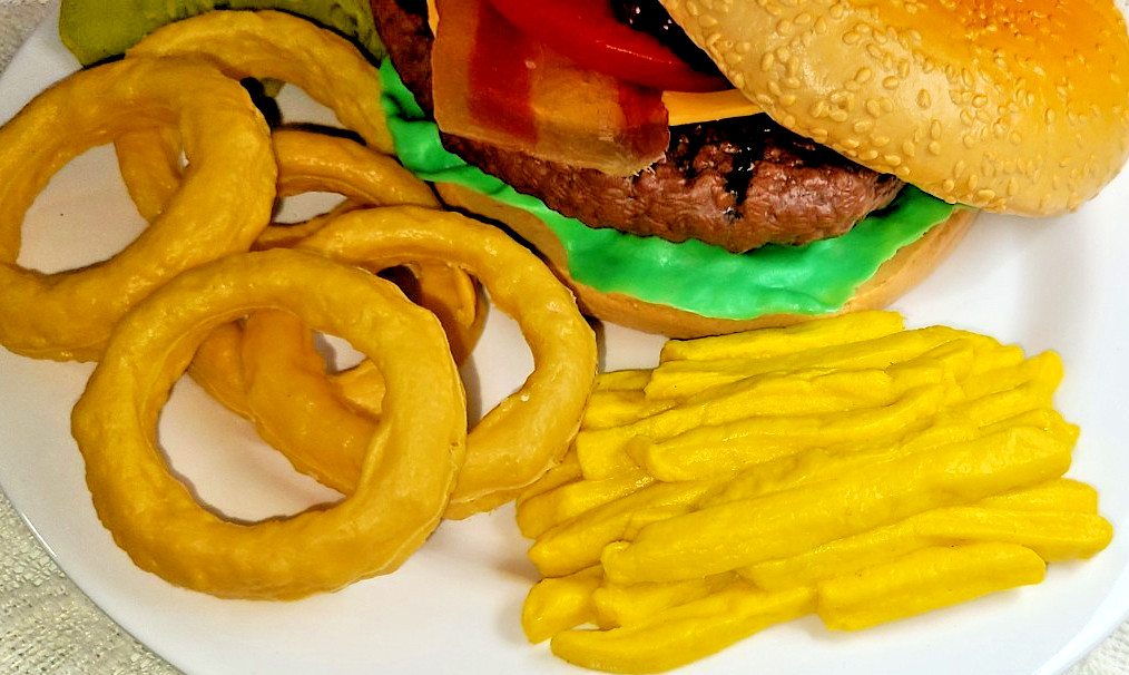 как выглядит VTG Burger King WHOPPER Cheeseburger ONION RINGS Fries Realistic Food PROP MTC фото