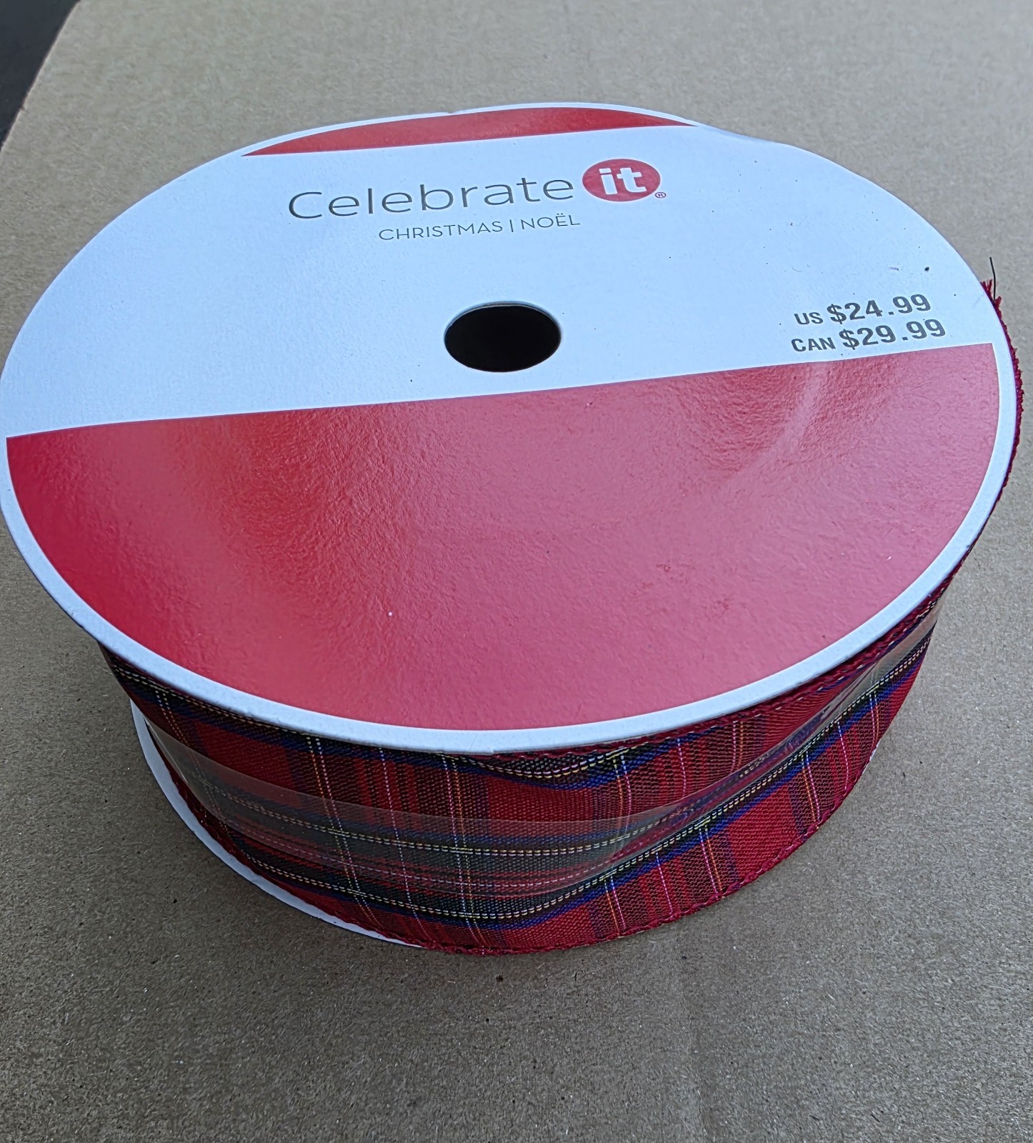 Celebrate It Wired Jumbo Red Green Plaid Ribbon Christmas Bow DIY 2.5 x 80ft