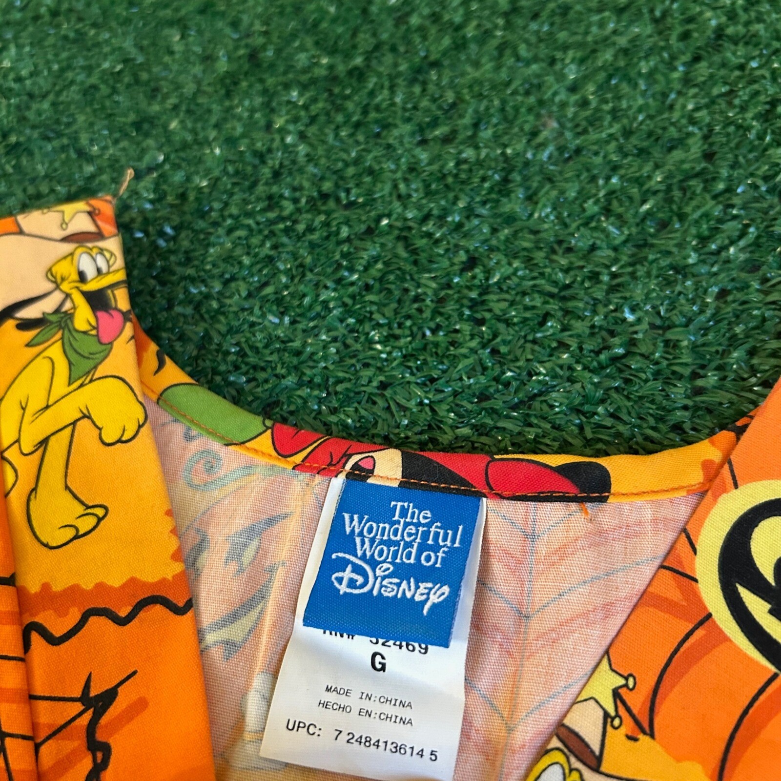 Disney Halloween Scrub Top Tricky Mickey Mouse Shirt Orange Adult Large