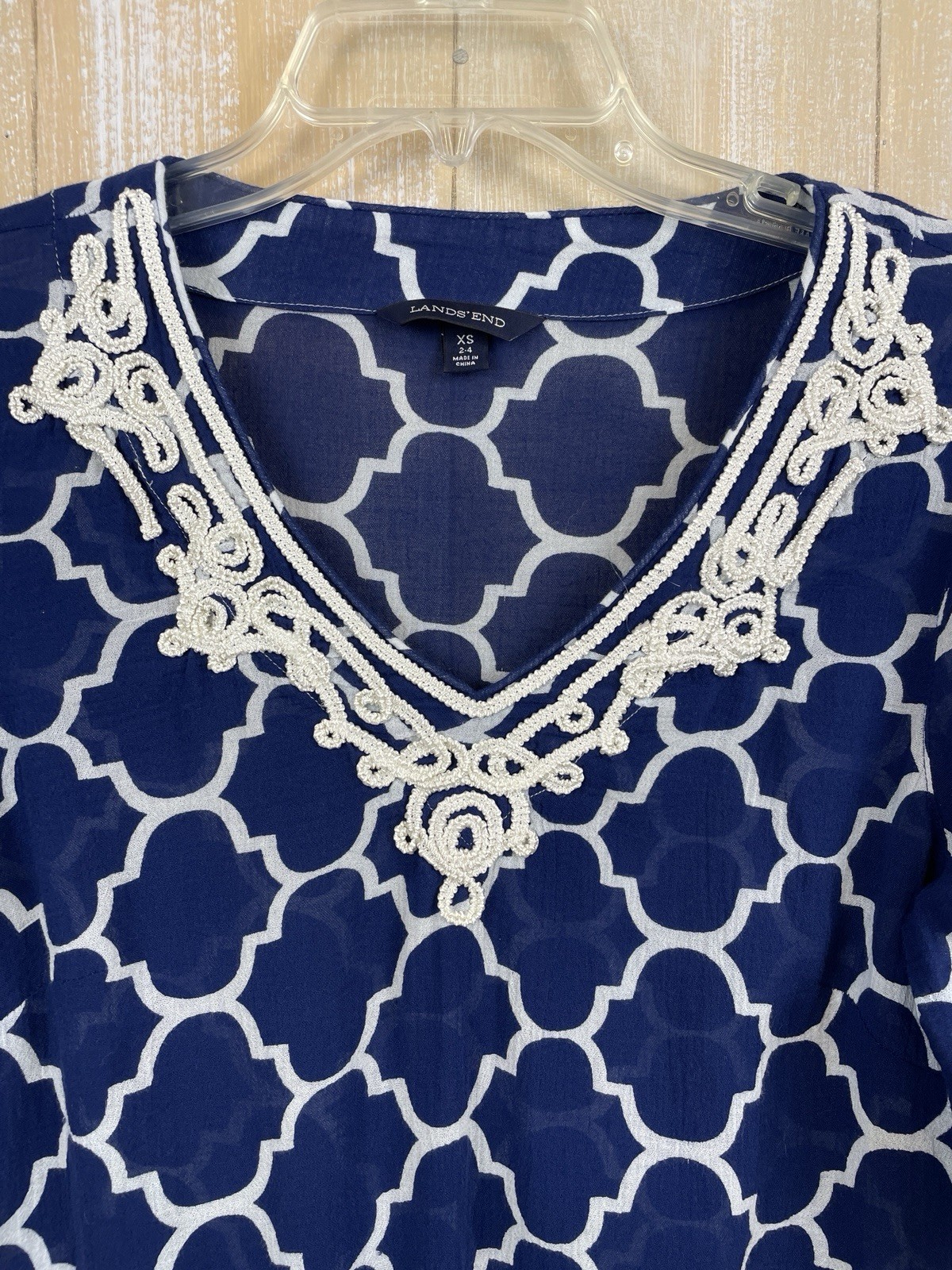 LANDS' END Women s XS Navy Blue Beach Swim Cover-up w/White Braid Detail Pockets