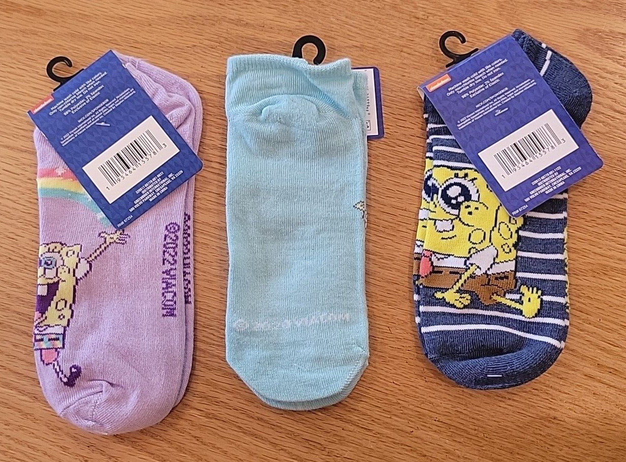 NEW SpongeBob SquarePants 3 Pair Women's Novelty No-Show Socks Shoe Size 4-10