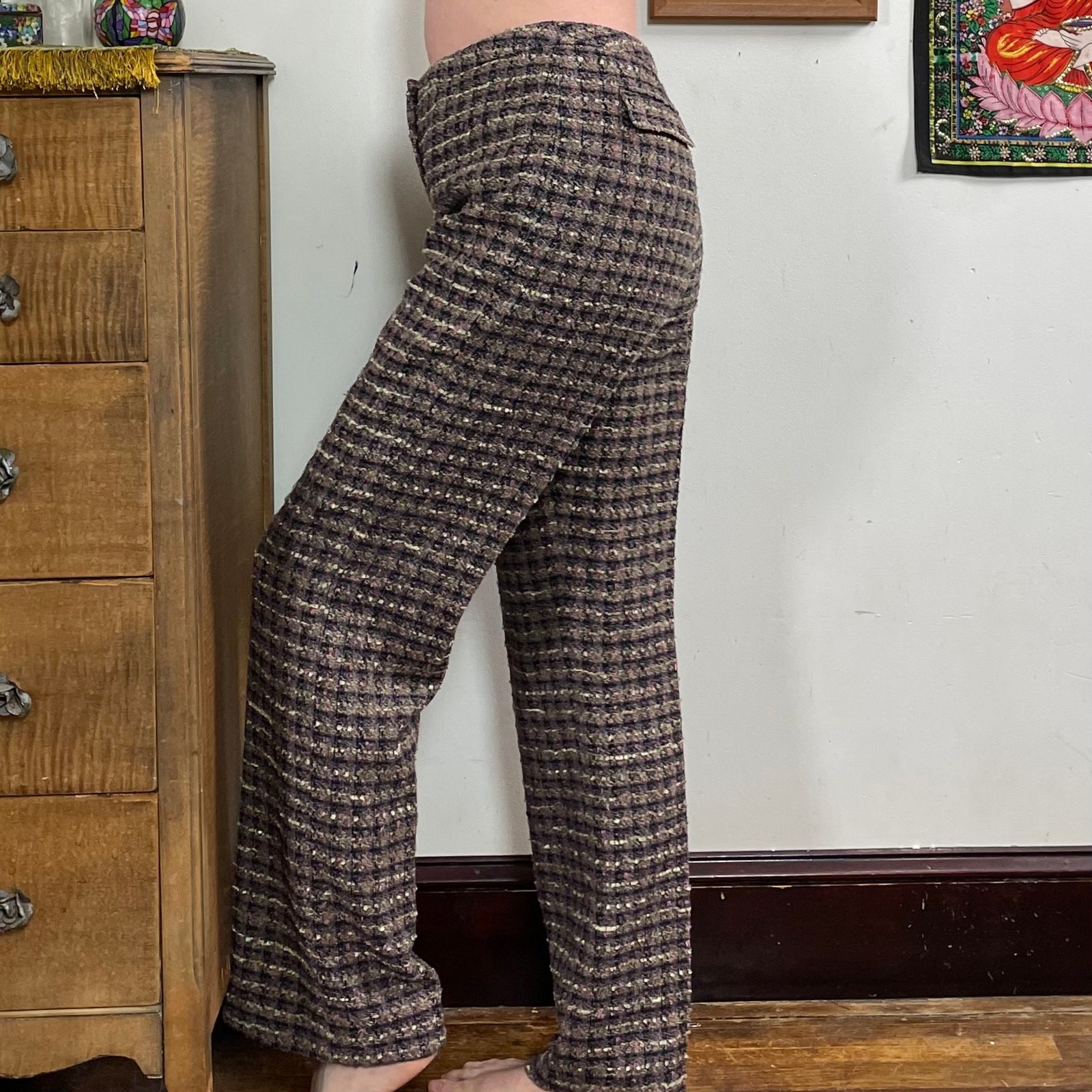 как выглядит Vintage Purple Tweed Pants, 1990s Straight Leg High Rise Trousers, Sz L фото
