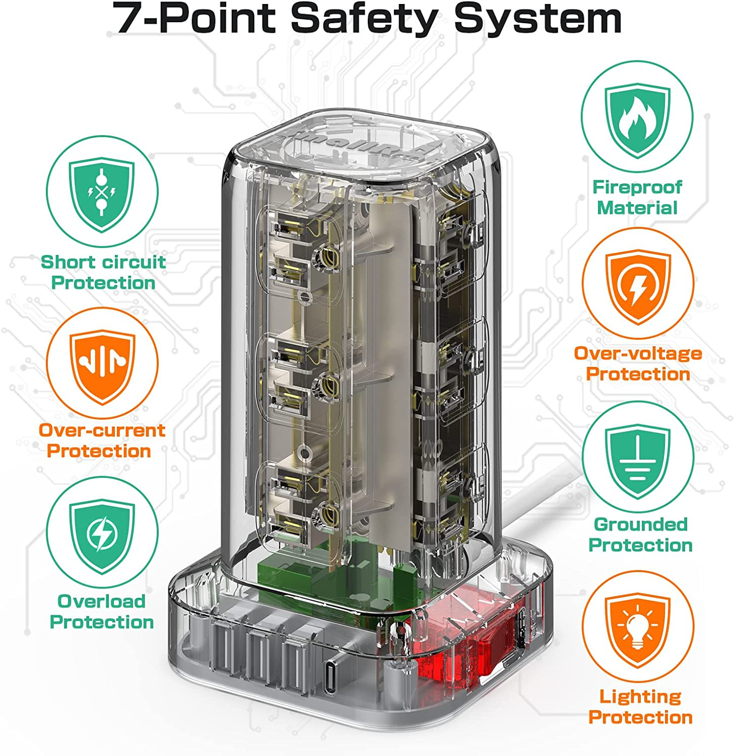 как выглядит Tower Surge Protector Power Strip with 12 Outlets 4 USB 1 USB C , 6.5Feet Exten фото